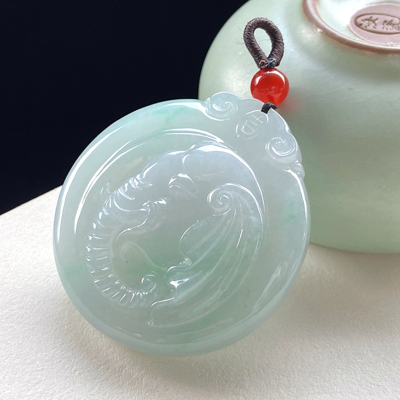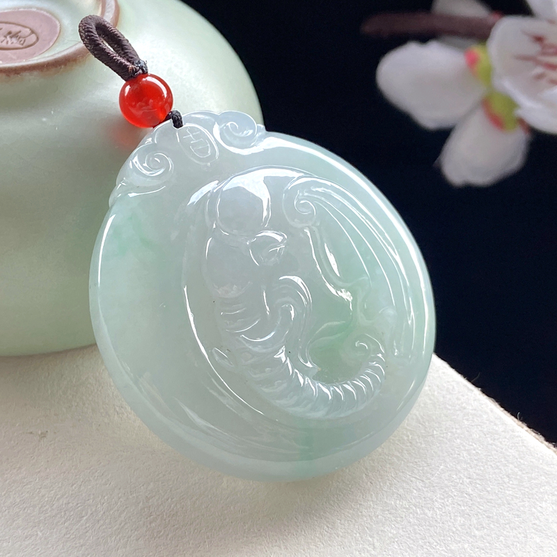 • [名  称] 糯种浅绿翡翠太平有象吊坠