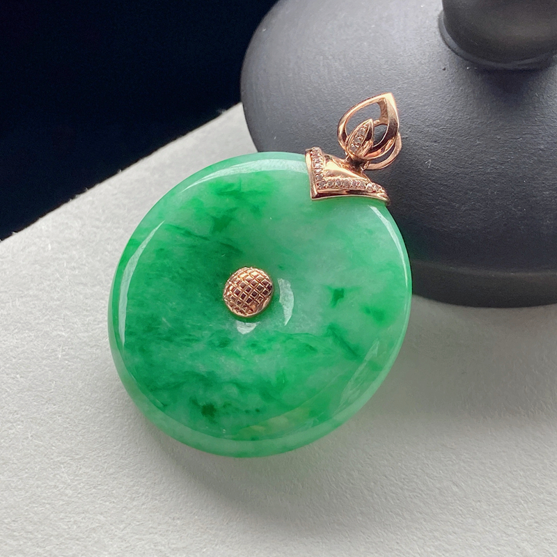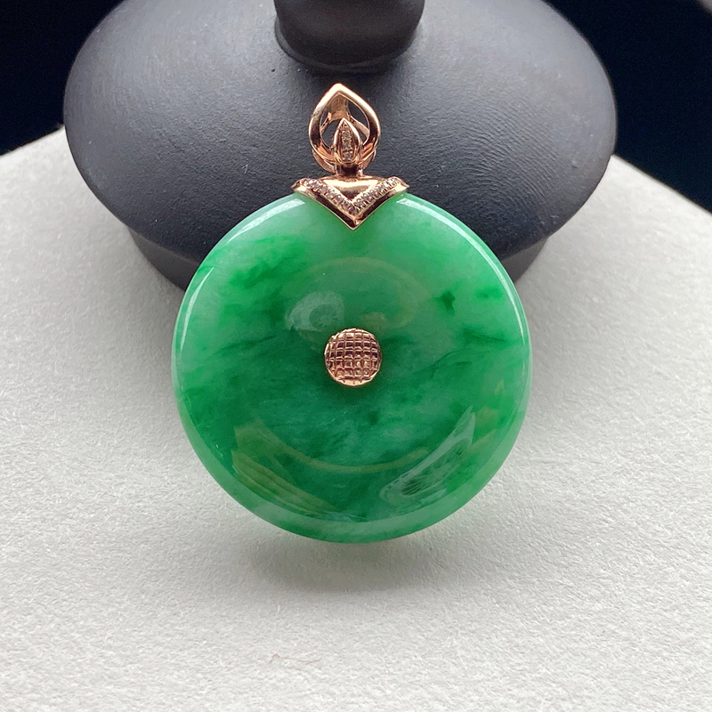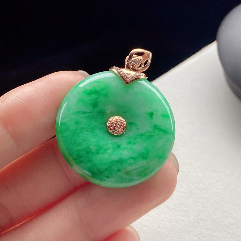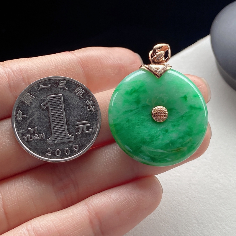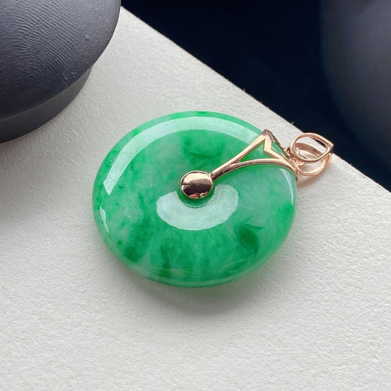 • [名  称] 18K糯种翠绿翡翠平安扣吊坠