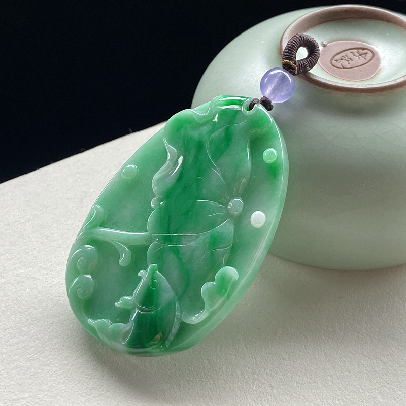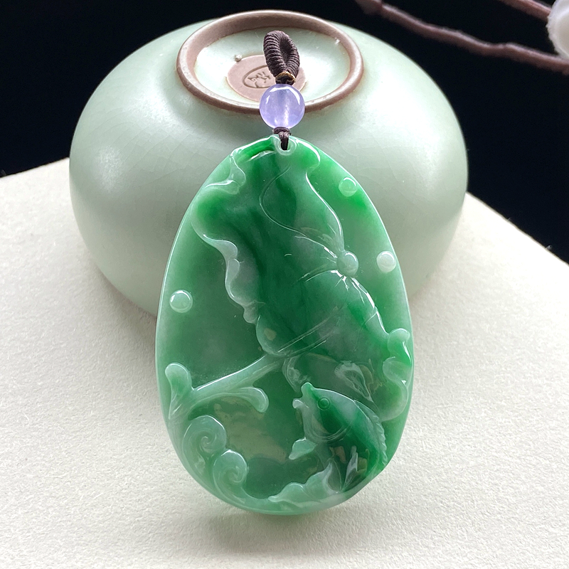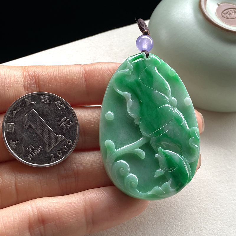 • [名  称] 糯种翠绿翡翠连年有余吊坠