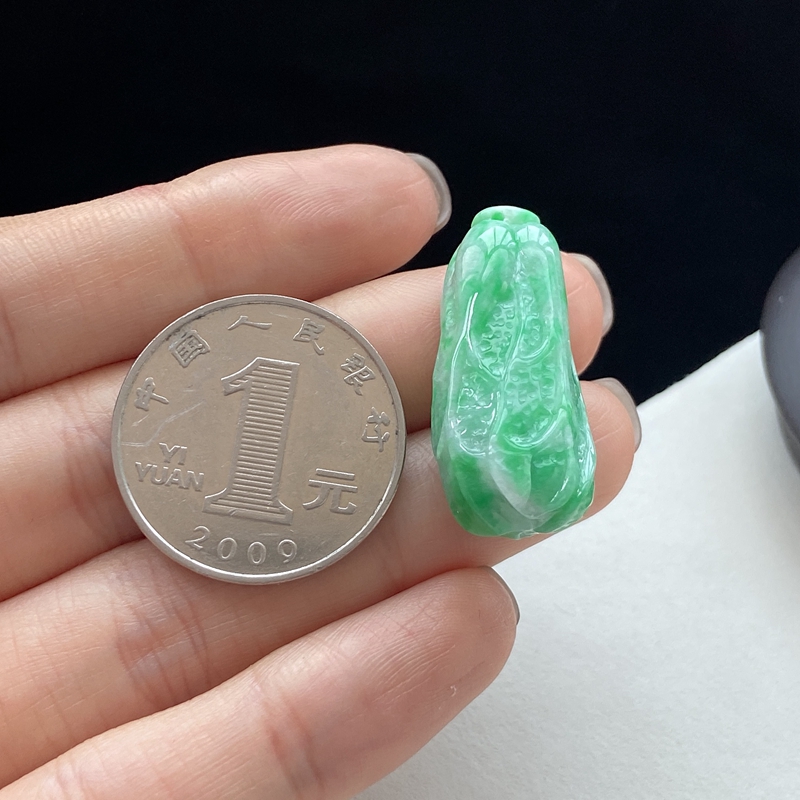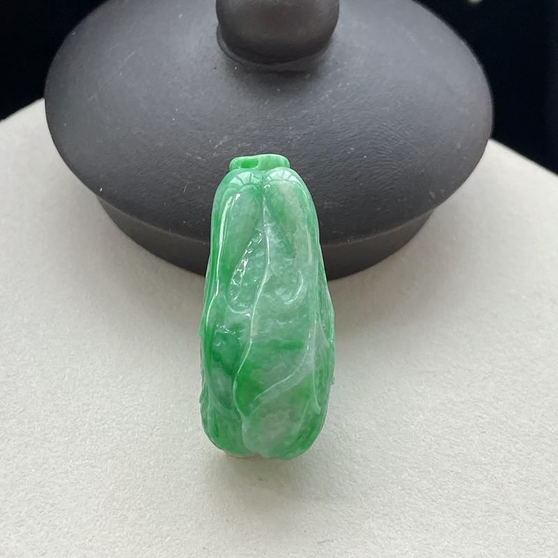 • 糯种带色翡翠百财吊坠