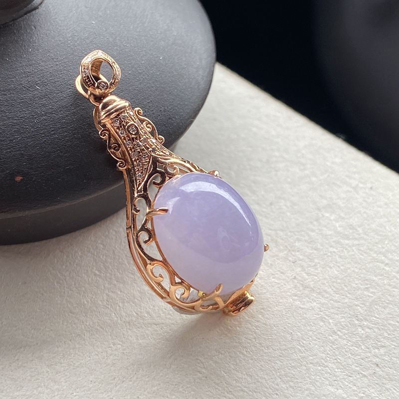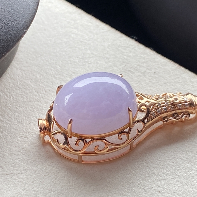• 18K糯种紫罗兰翡翠平平安安吊坠