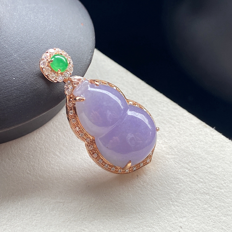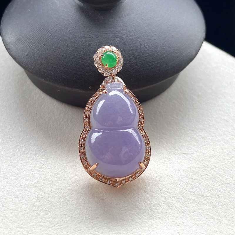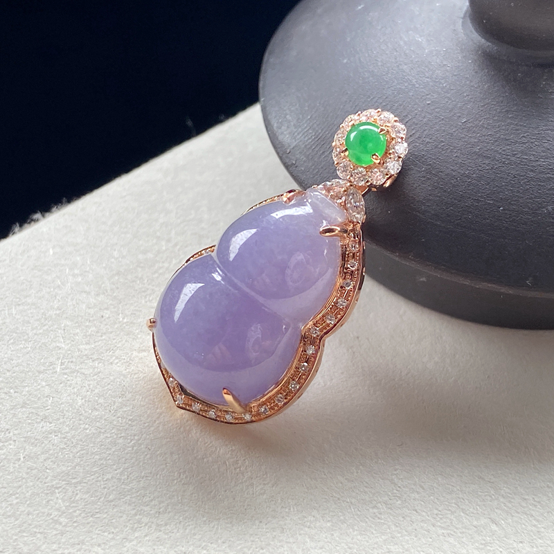 • 18K糯种紫罗兰翡翠葫芦吊坠