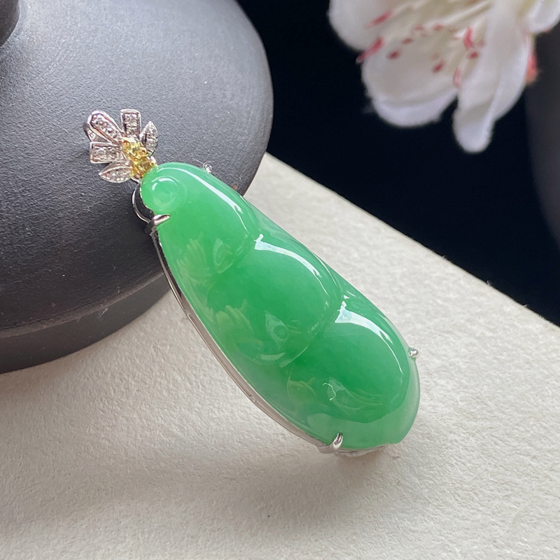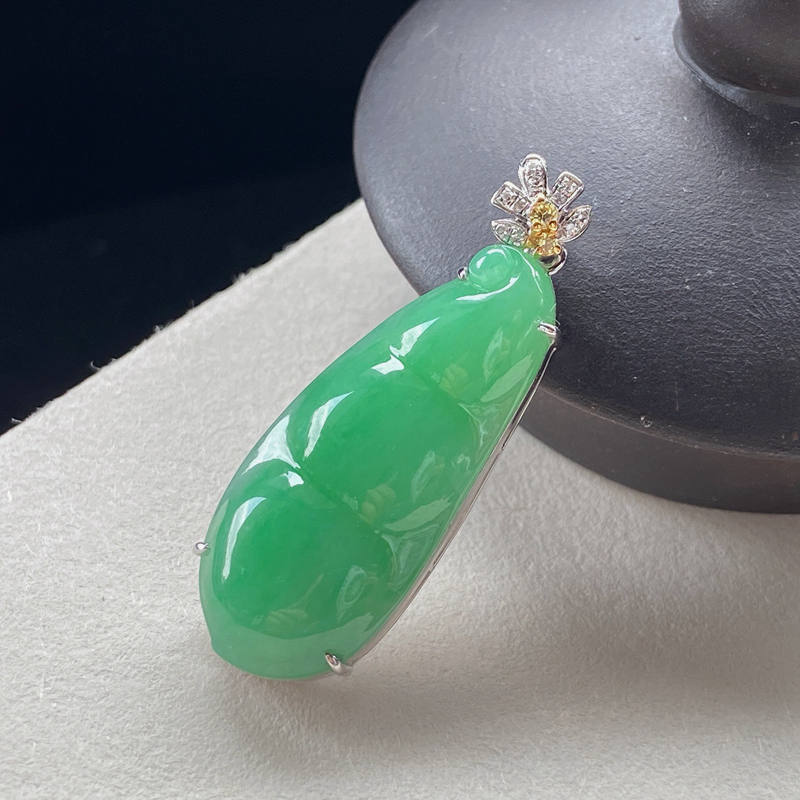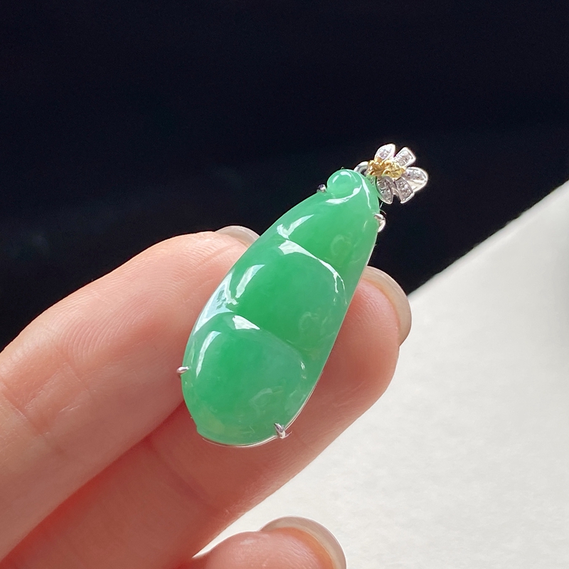 • [名  称] 18K糯种浅绿翡翠福豆吊坠