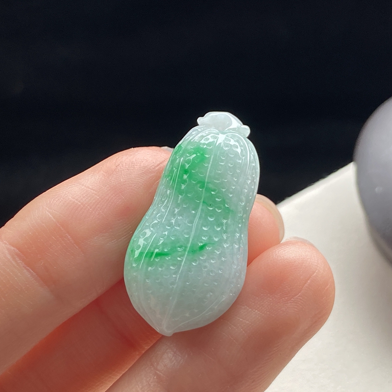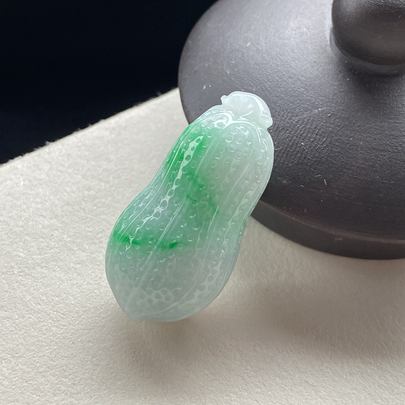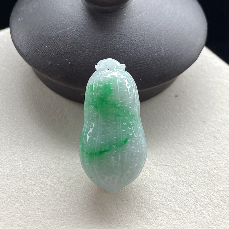 • 糯种带色翡翠生意兴隆吊坠
