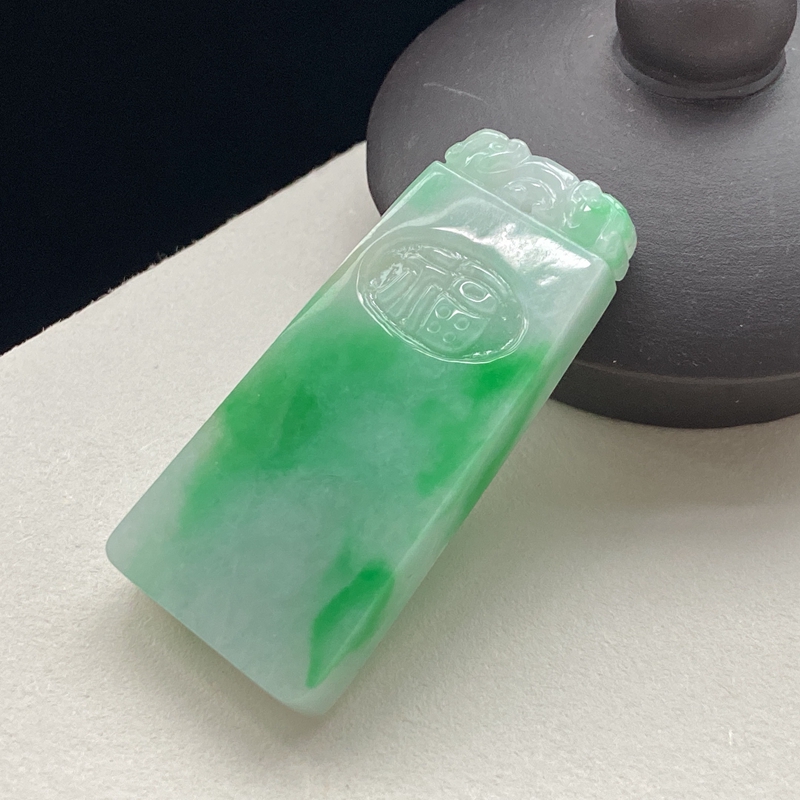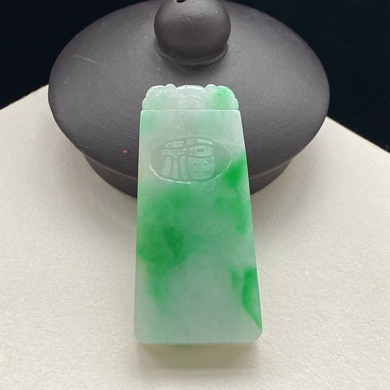 • [名  称] 糯种阳绿翡翠平安无事吊坠