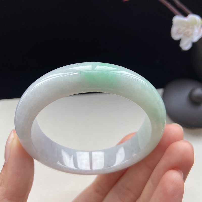 • [名  称] 54mm糯种浅绿翡翠平安镯