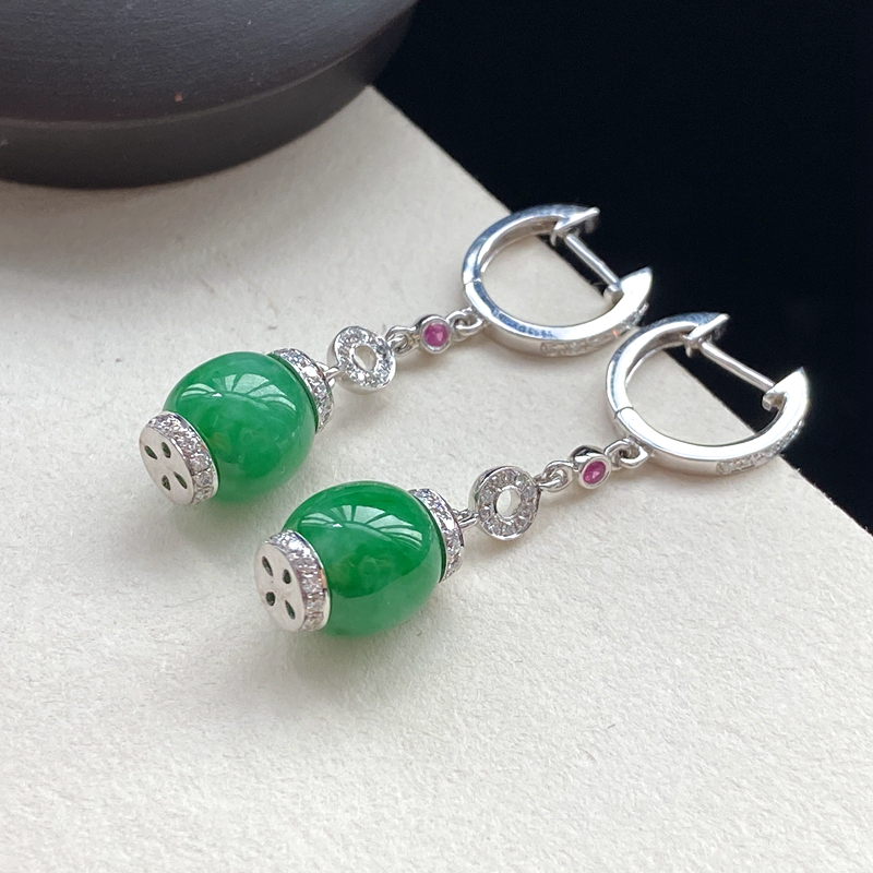 • [名  称] 18K糯种豆绿翡翠路路通耳坠