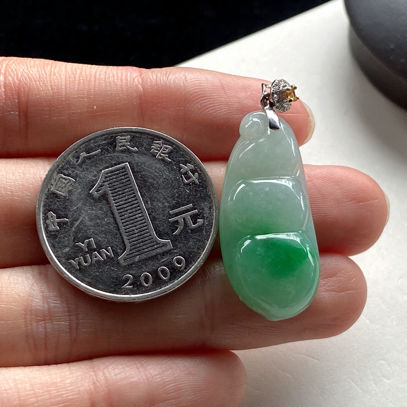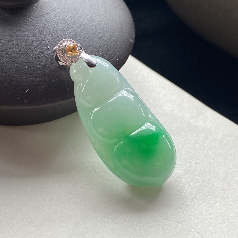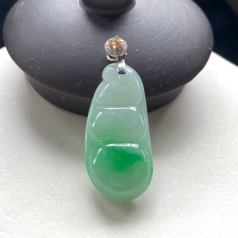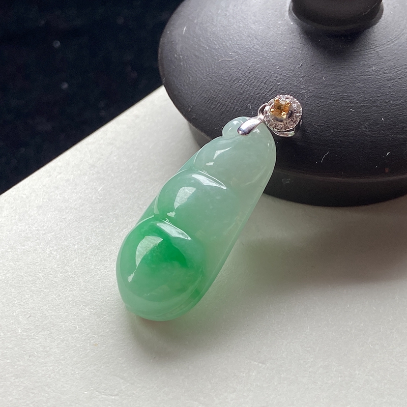 • [名  称] 18K糯种带色翡翠福豆吊坠