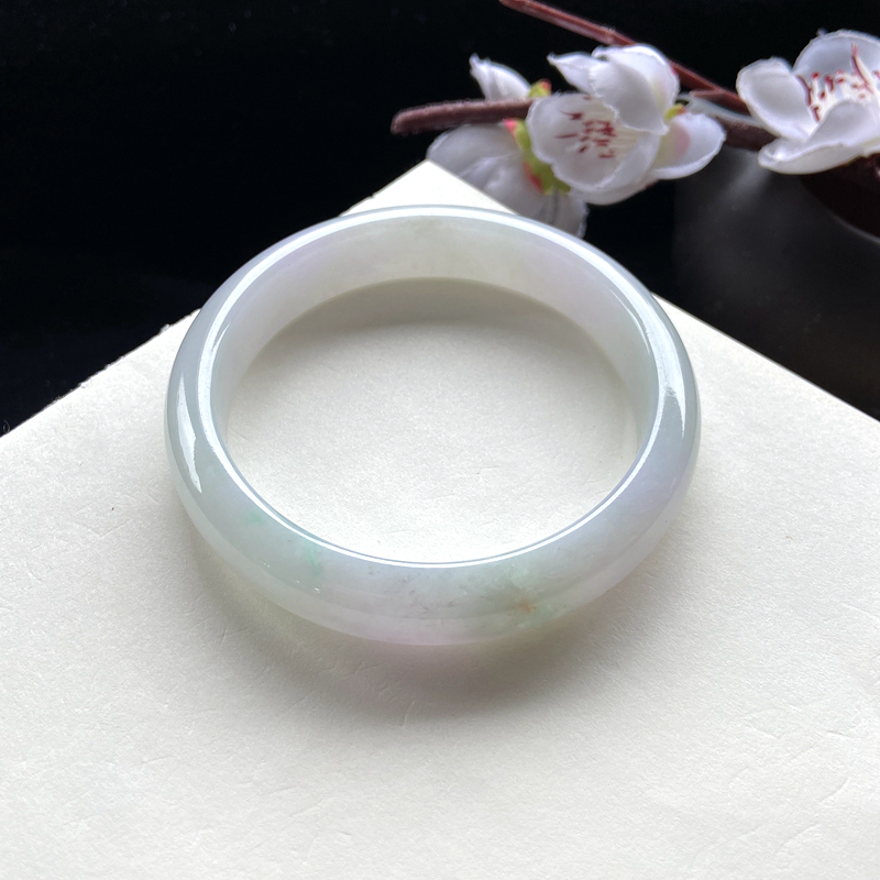 • 57mm糯种浅紫罗兰翡翠平安镯