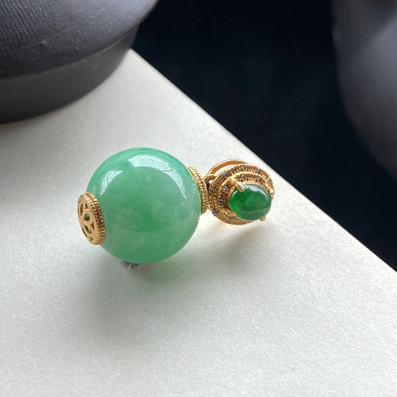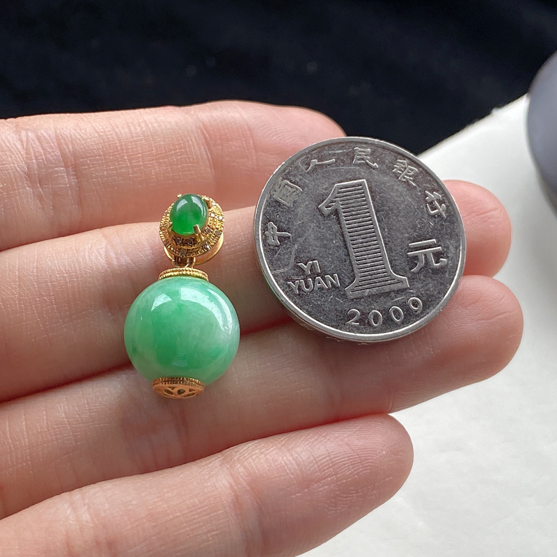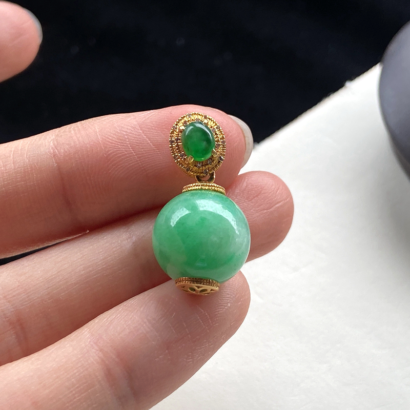 • [名  称] 18K糯种浅绿翡翠圆珠吊坠