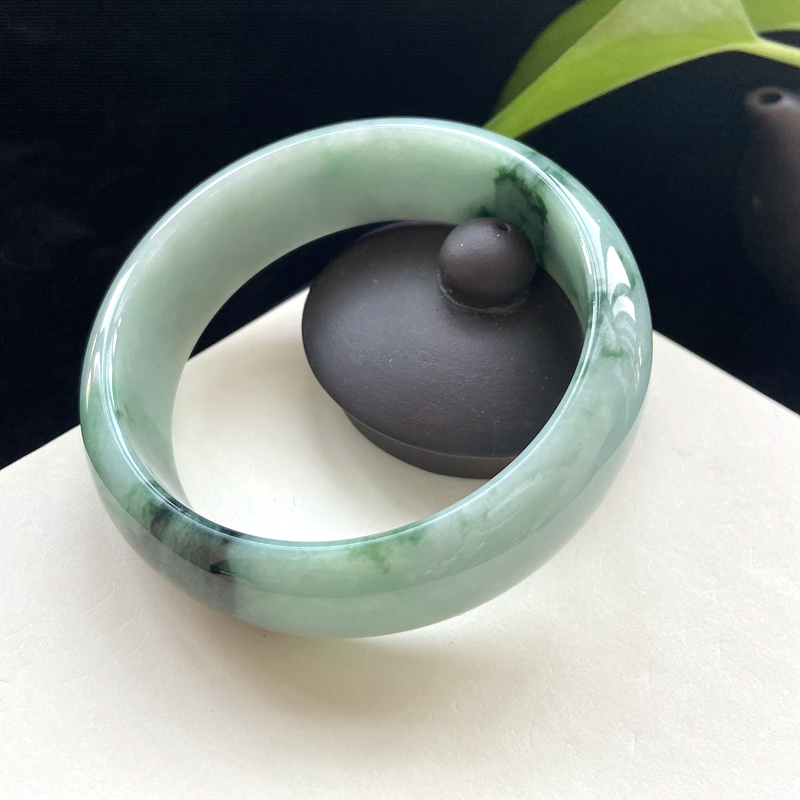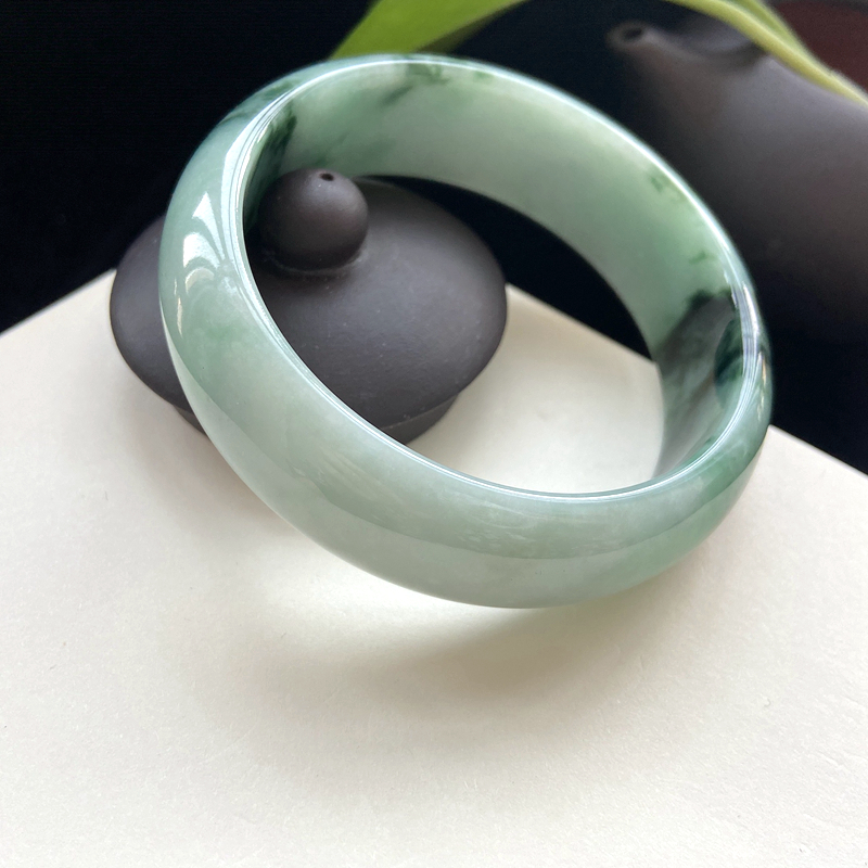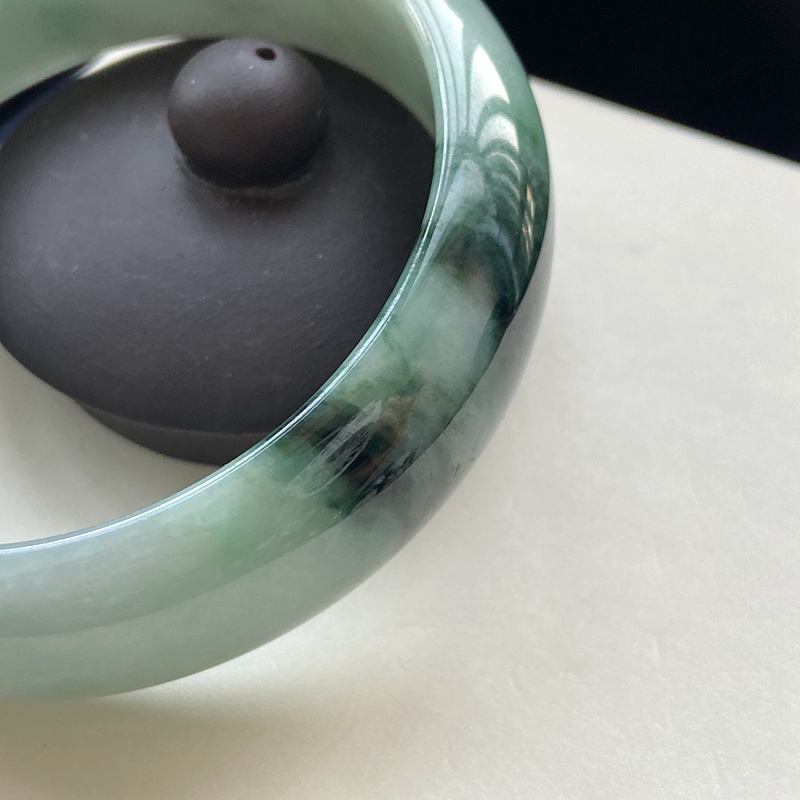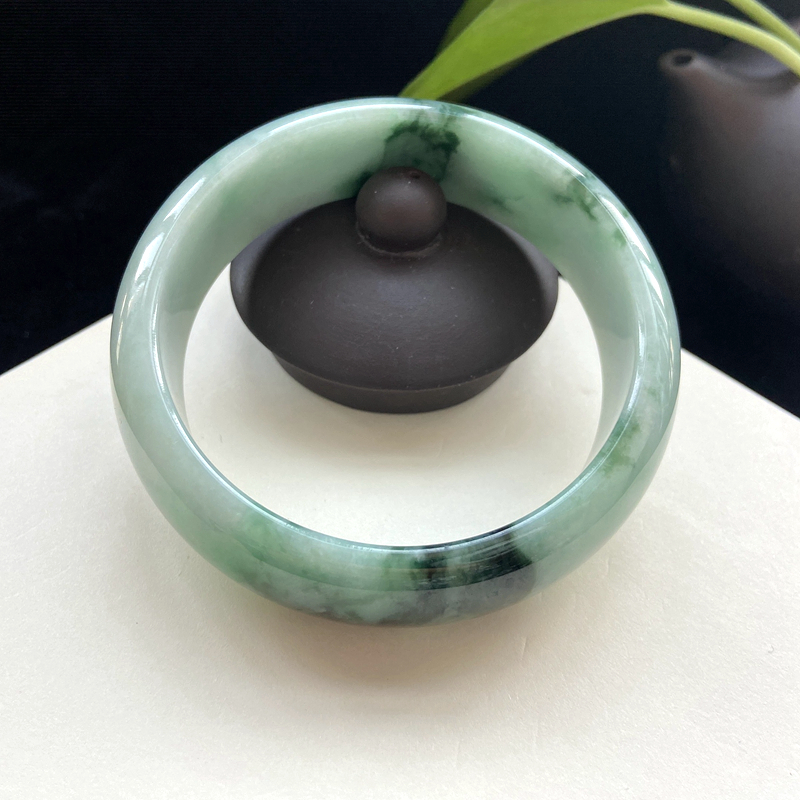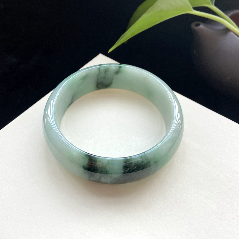 • 58.5mm糯种飘花翡翠平安镯