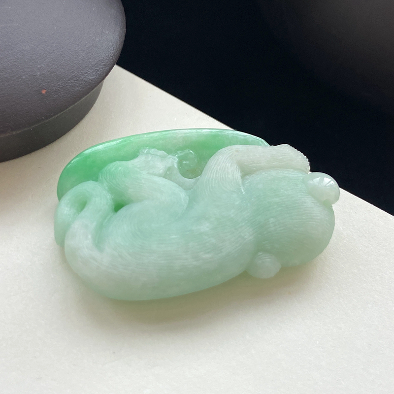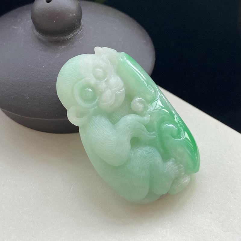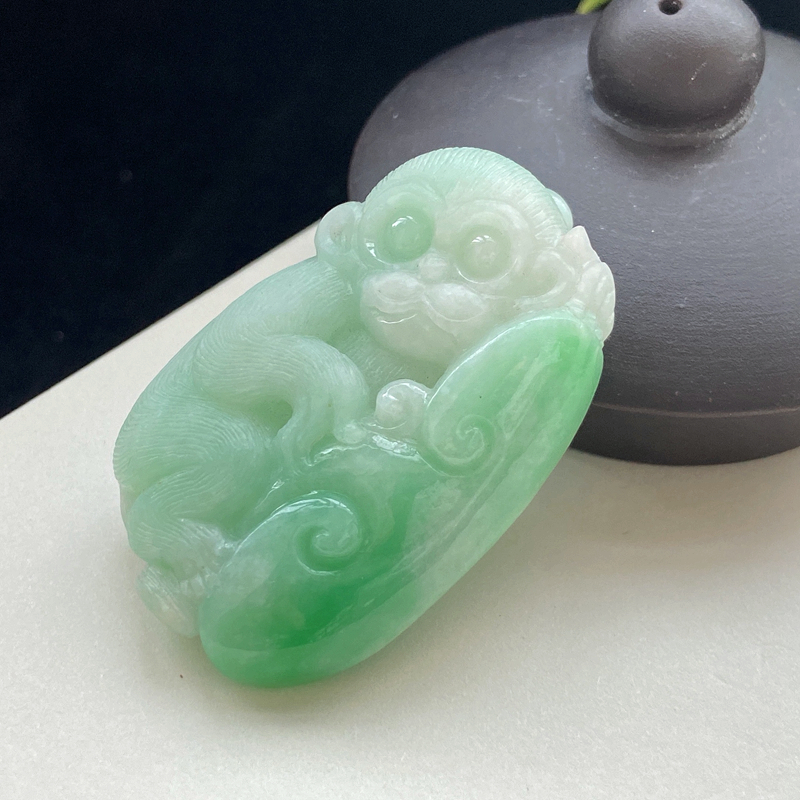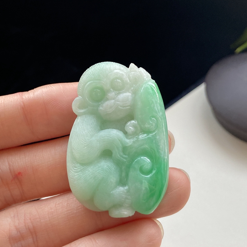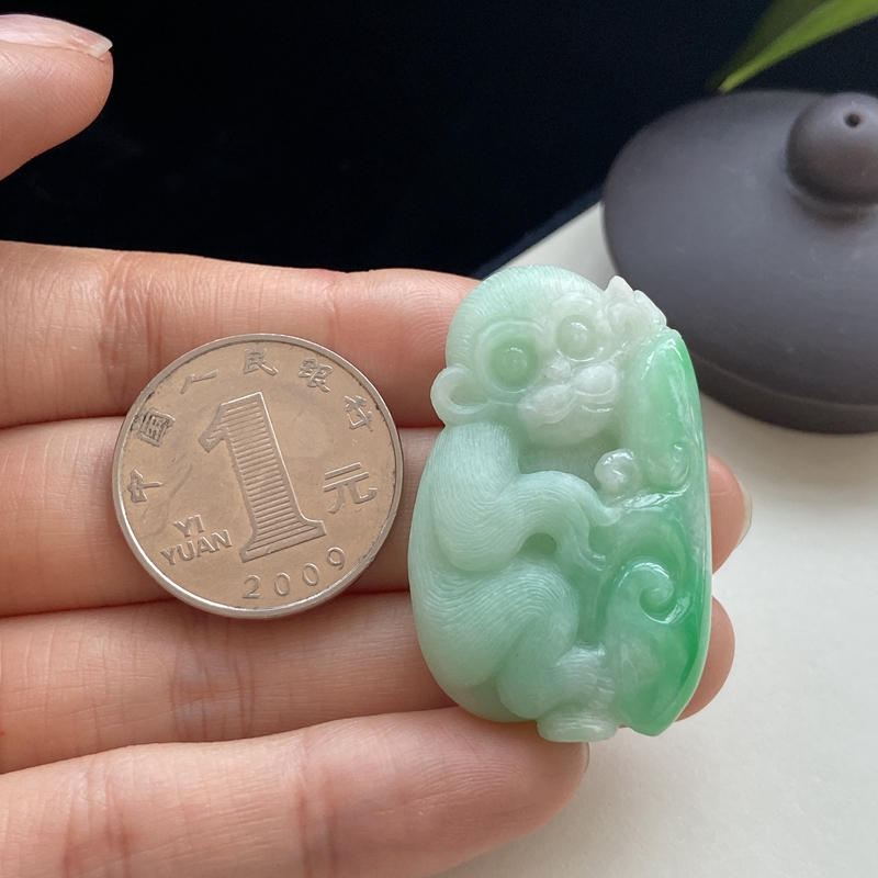 • [名  称] 糯种带色翡翠灵猴献瑞吊坠
