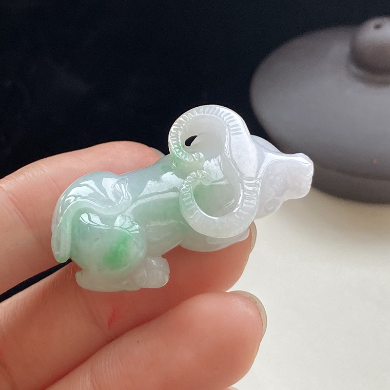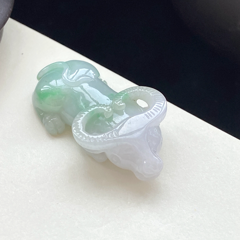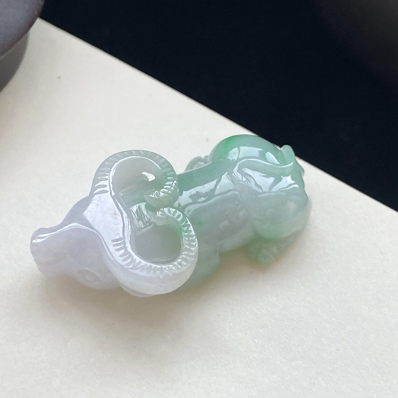 • [名  称] 糯种浅绿翡翠牛气冲天吊坠