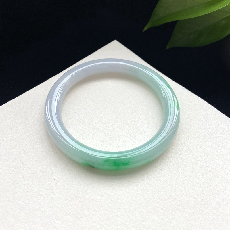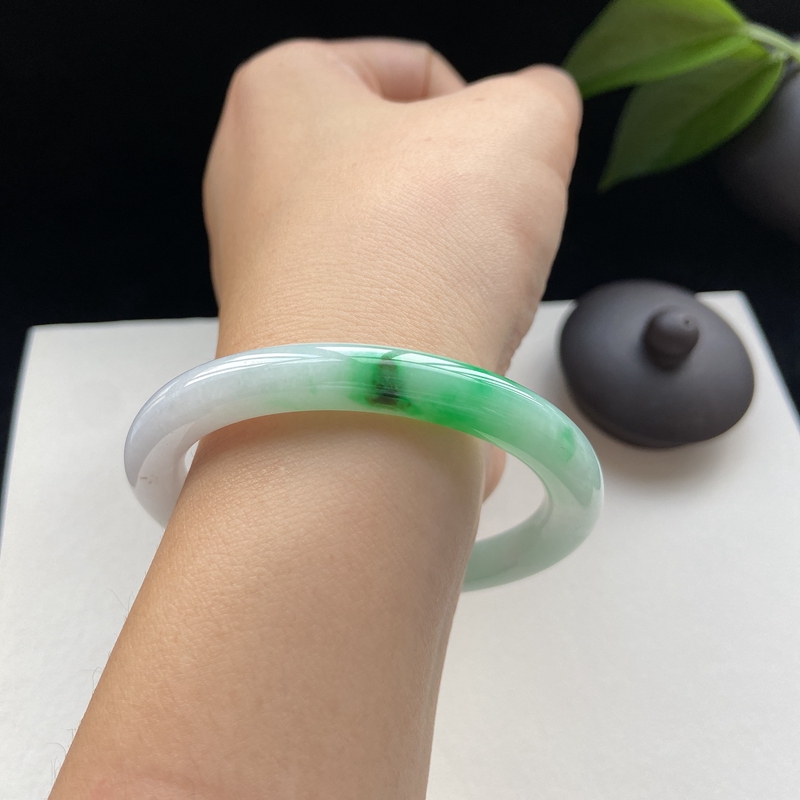 • 53mm糯种翠绿翡翠圆条镯