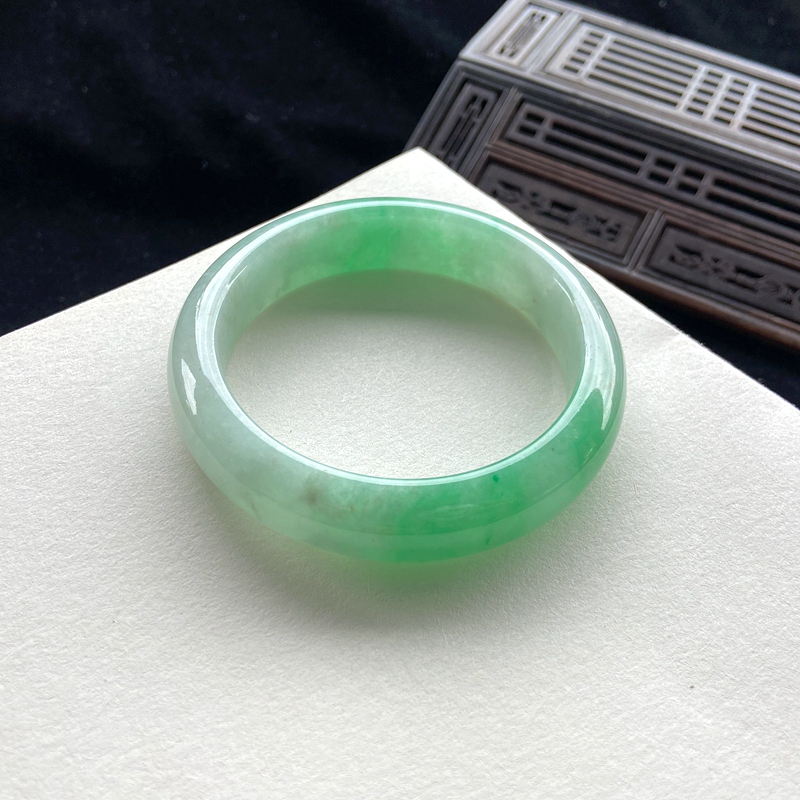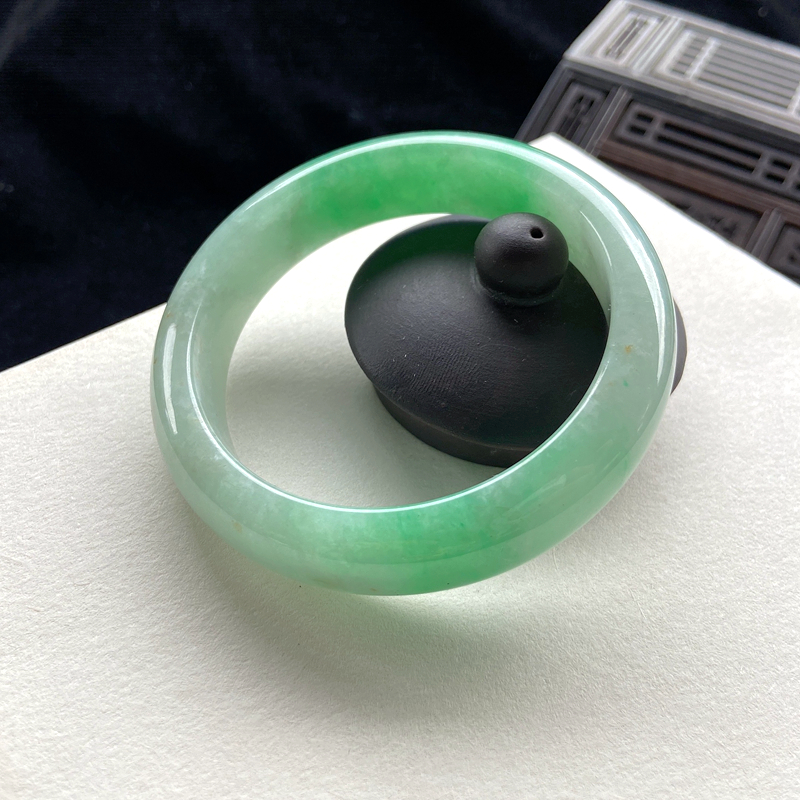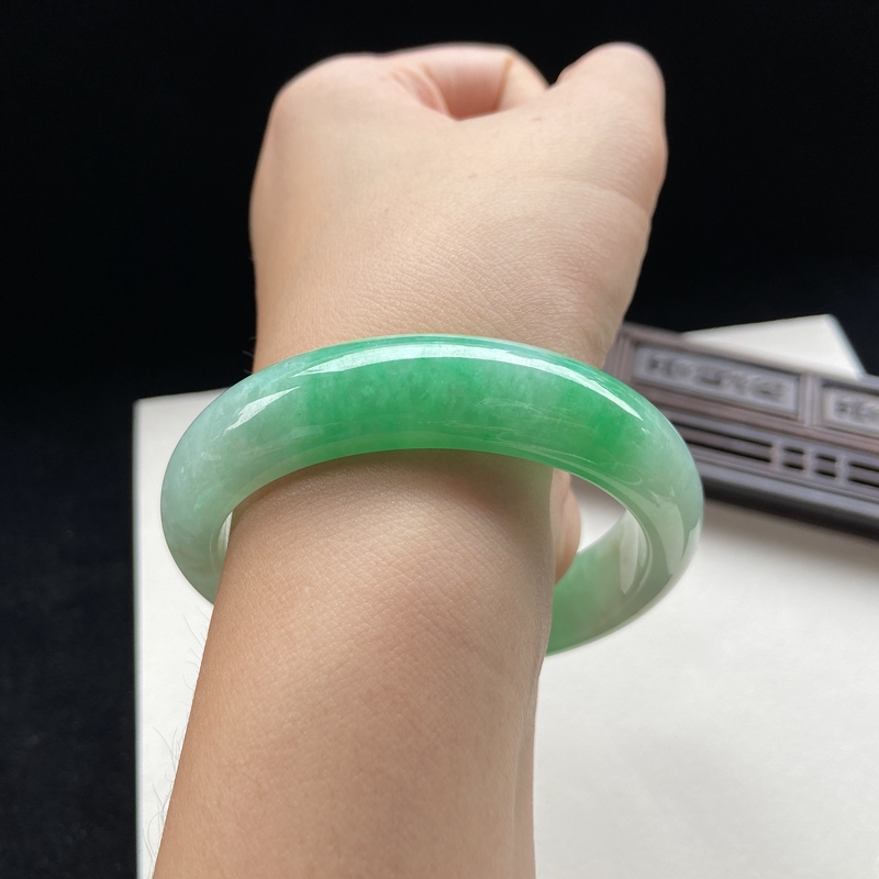 • 55mm糯种翠绿翡翠平安镯