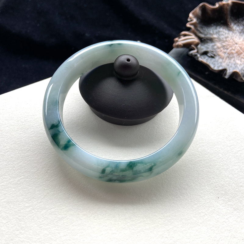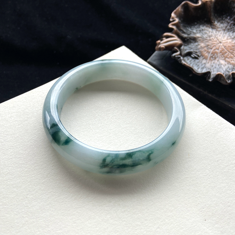 • 57.5mm糯种飘花翡翠平安镯