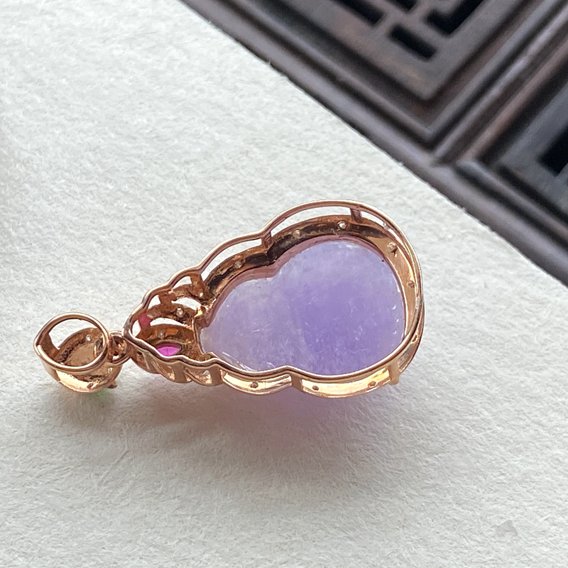• 18K糯种紫罗兰翡翠葫芦吊坠