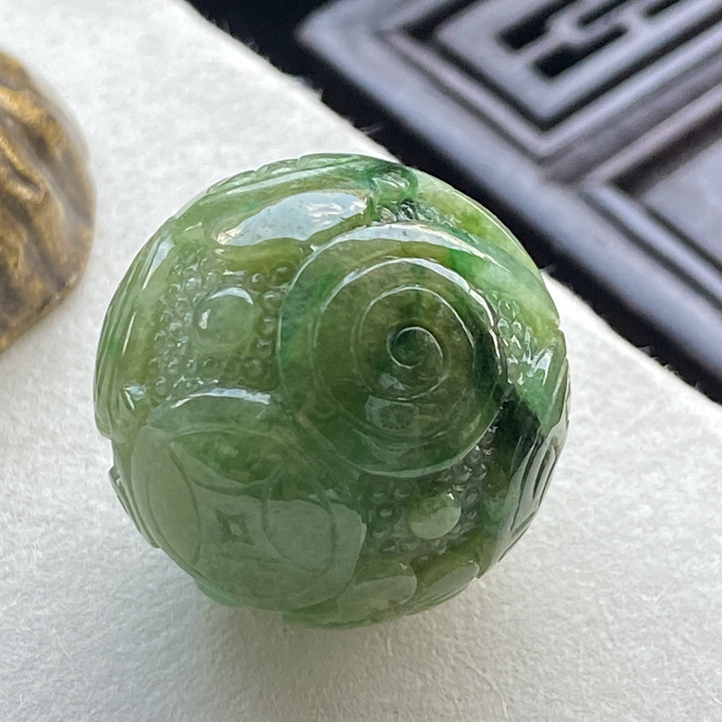 • [名  称] 糯种黄加绿翡翠雕花圆珠吊坠