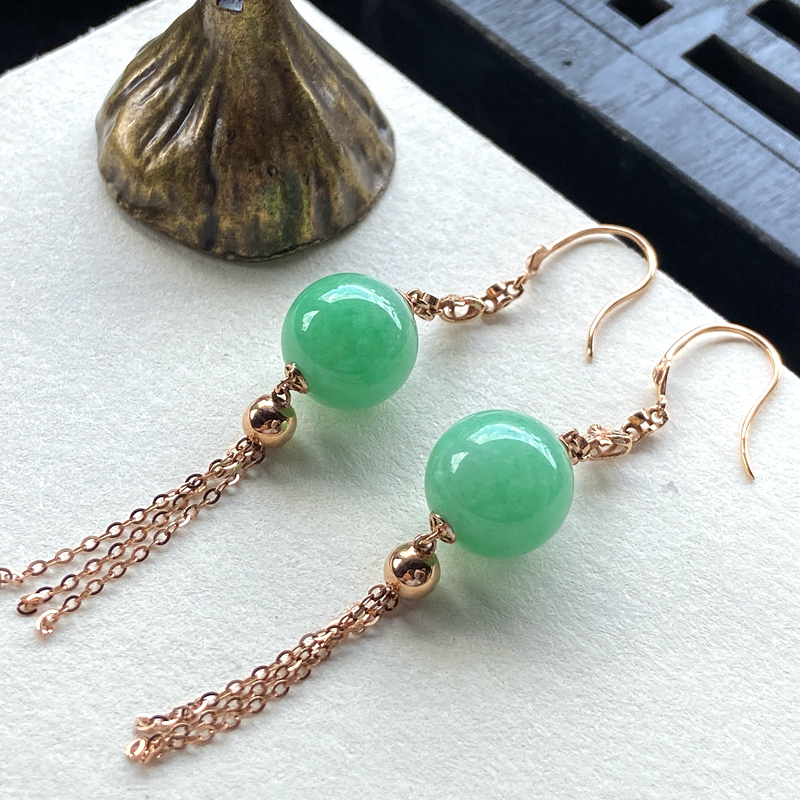 • [名  称] 18K糯种浅绿翡翠圆珠耳坠