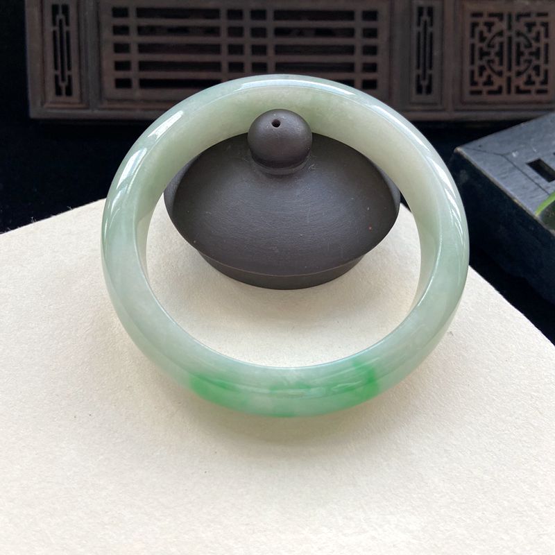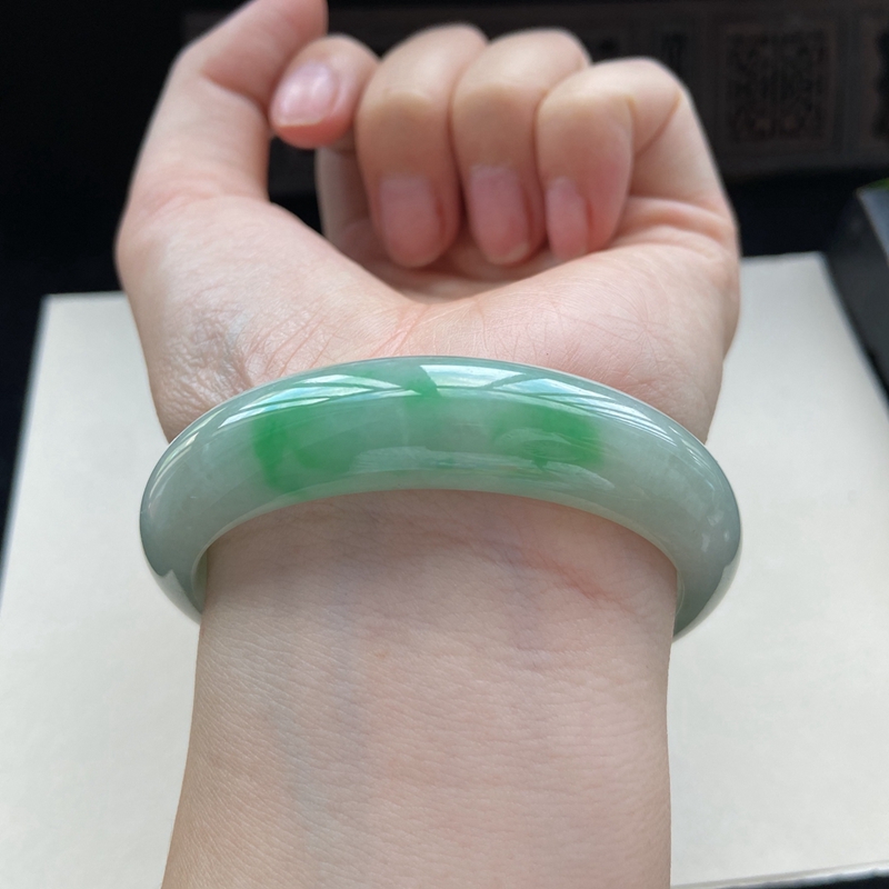 • [名  称] 55mm糯种浅阳绿翡翠平安镯