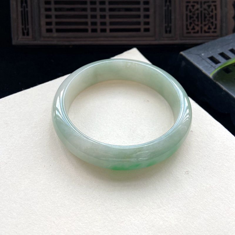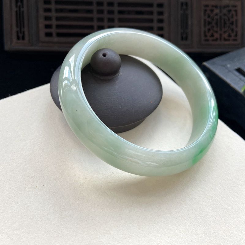 • 55mm糯种浅阳绿翡翠平安镯