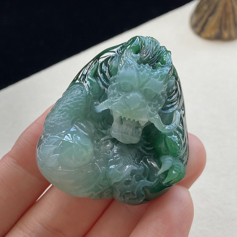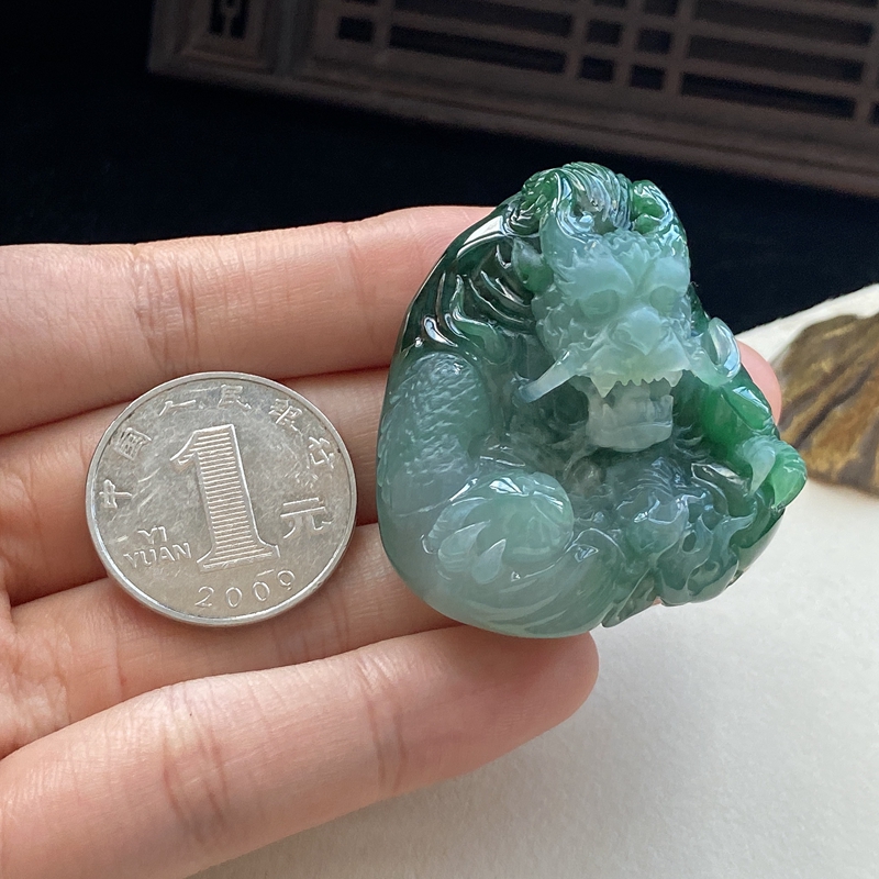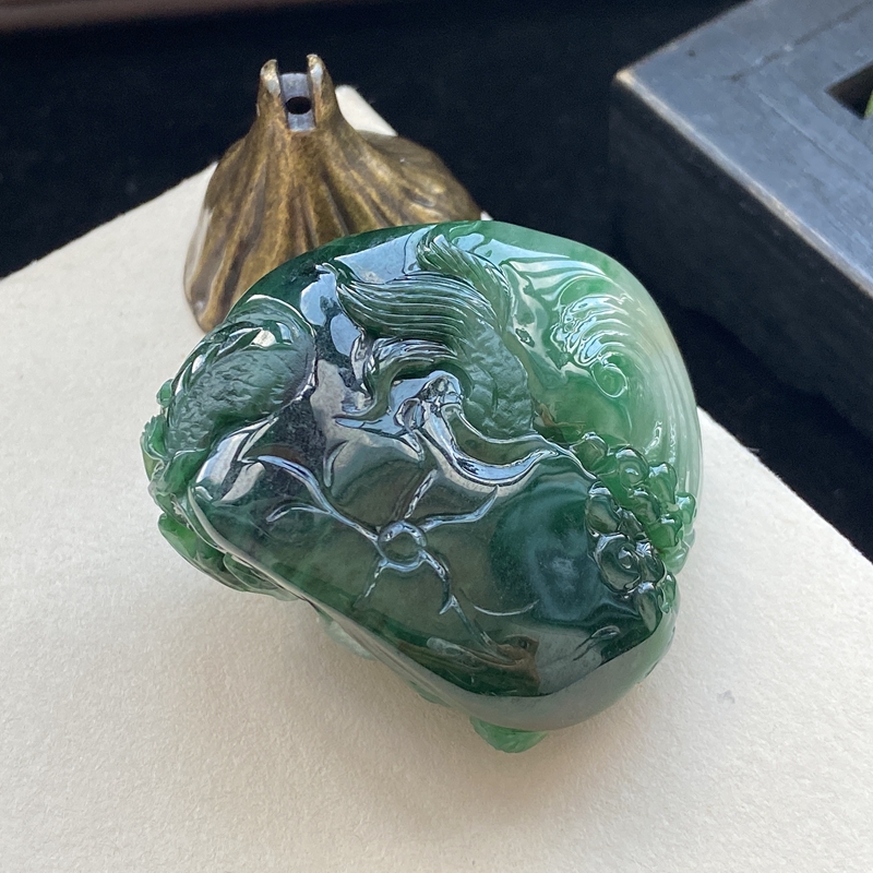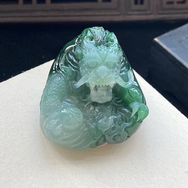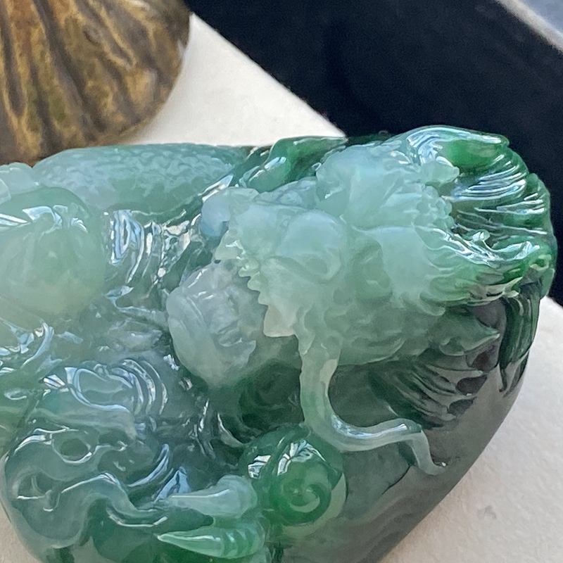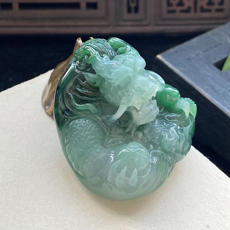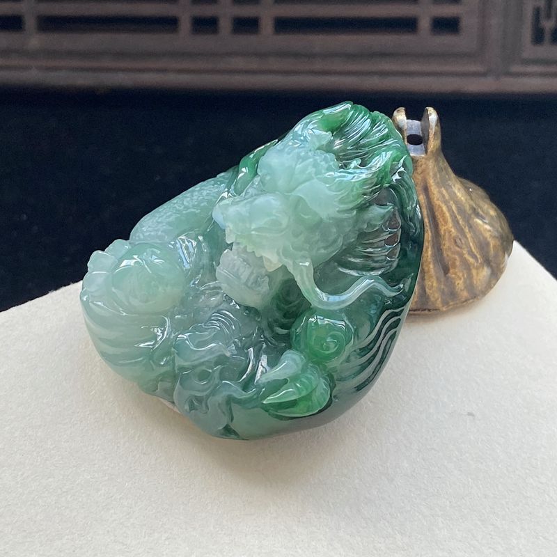 • 糯种油绿翡翠飞龙在天吊坠