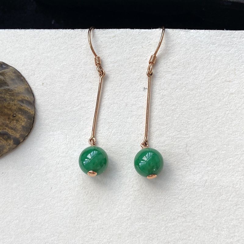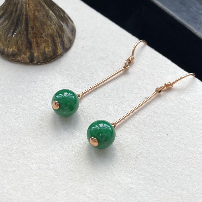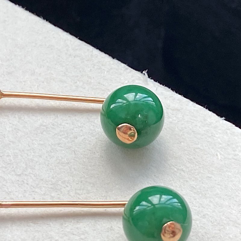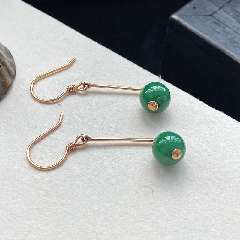 • [名  称] 18K糯种豆绿翡翠圆珠耳坠