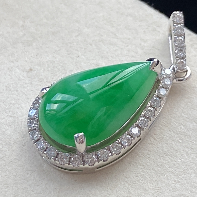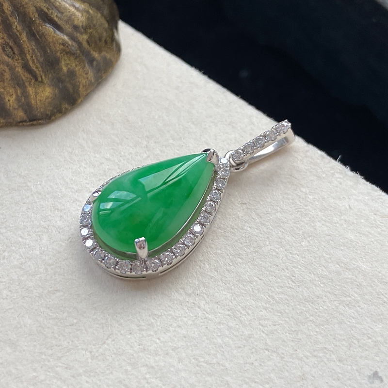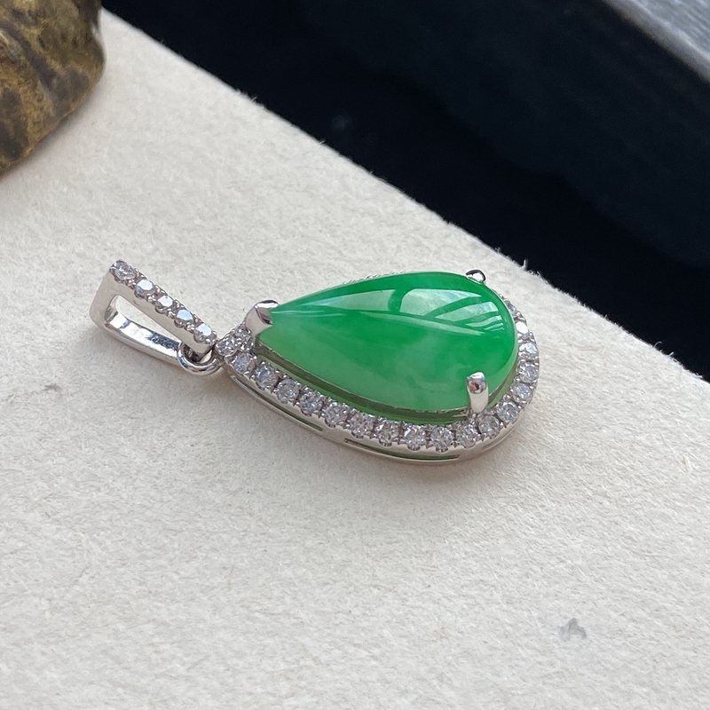 • [名  称] 18K糯种浅绿翡翠水滴吊坠