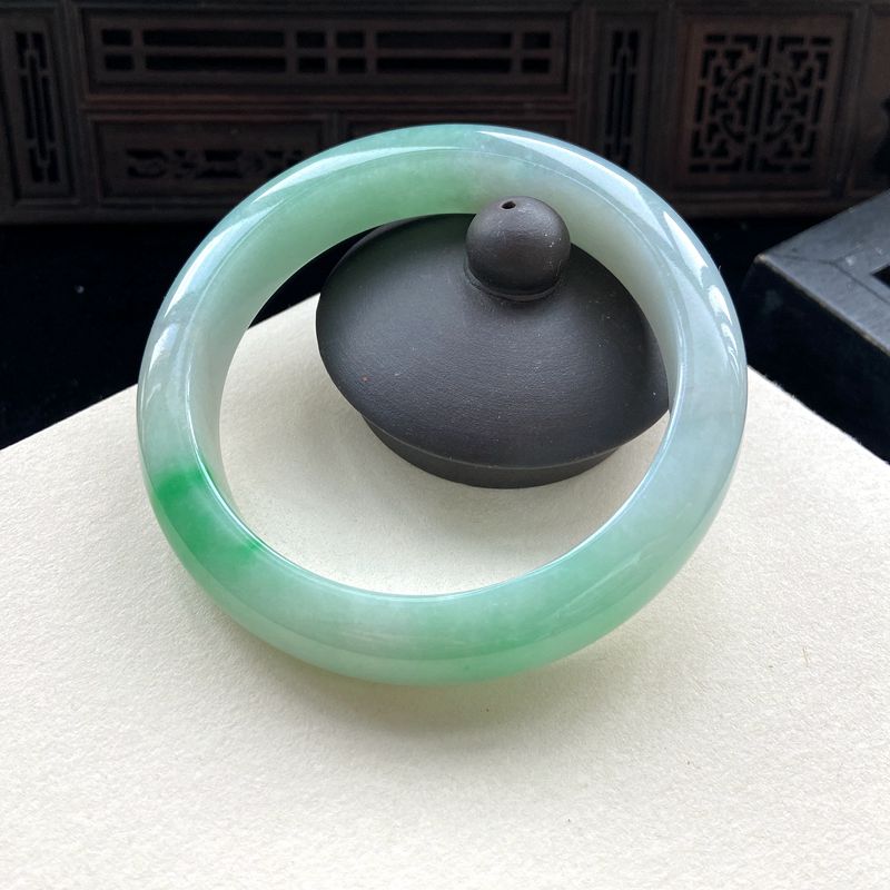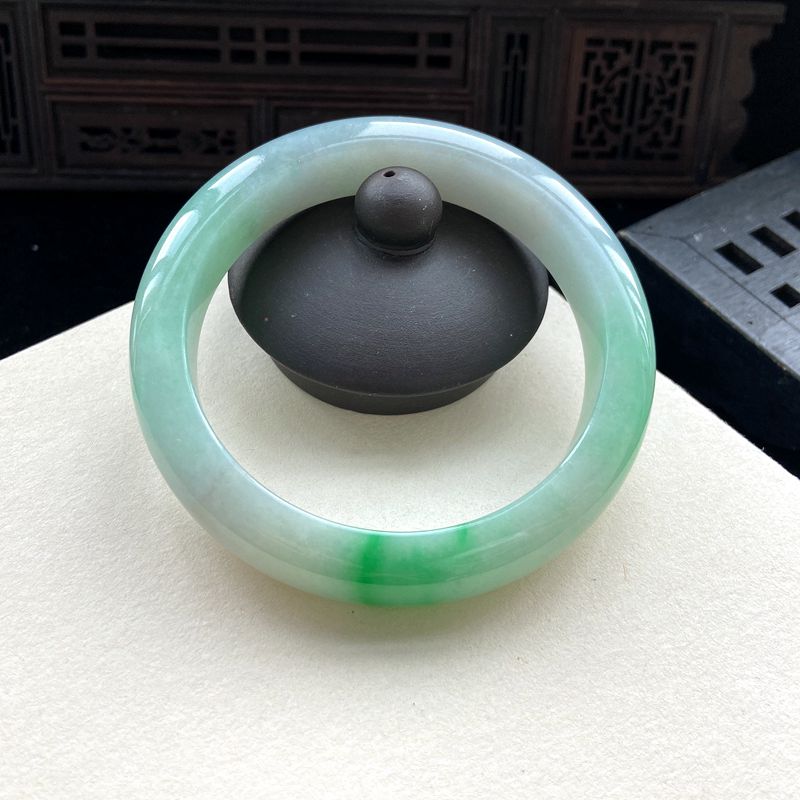 • [名  称] 56.5mm糯种翠绿翡翠平安镯