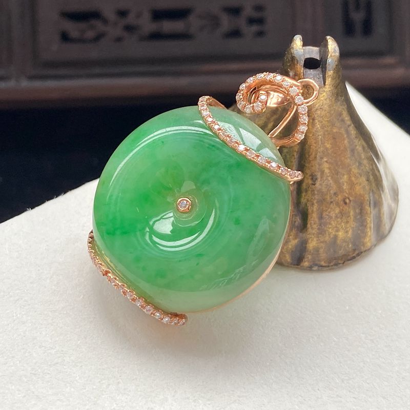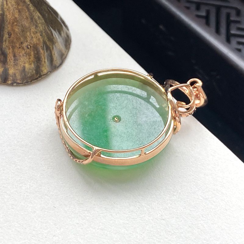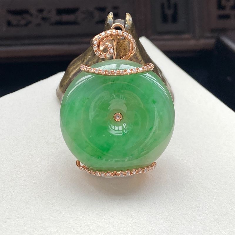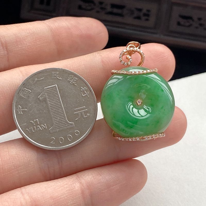 • [名  称] 18K糯种豆绿翡翠平安扣吊坠