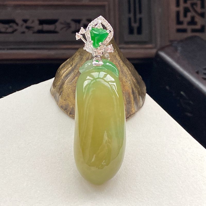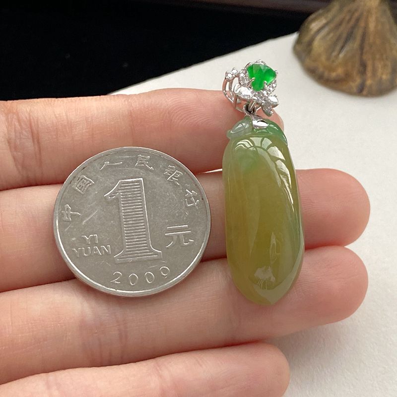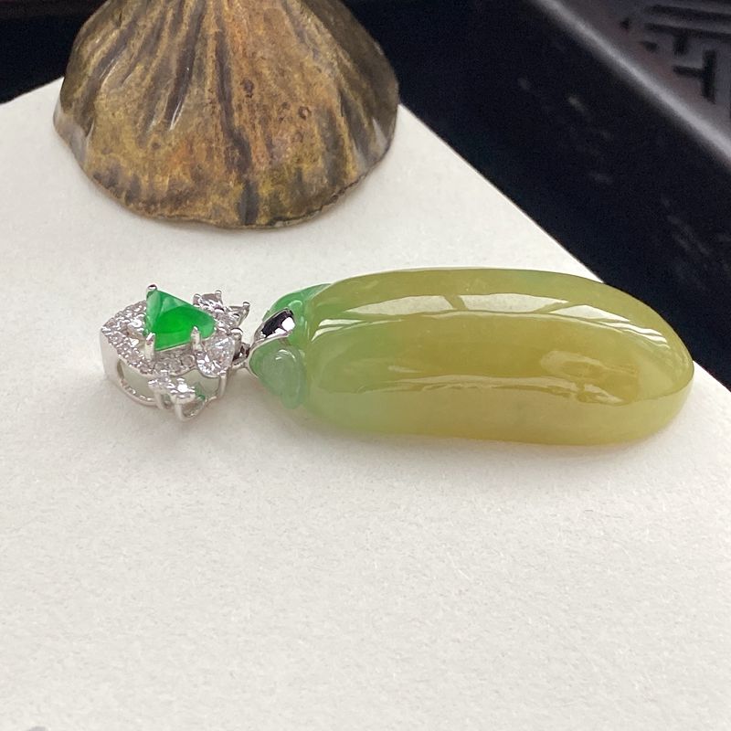 • [名  称] 18K糯种黄加绿翡翠福瓜吊坠