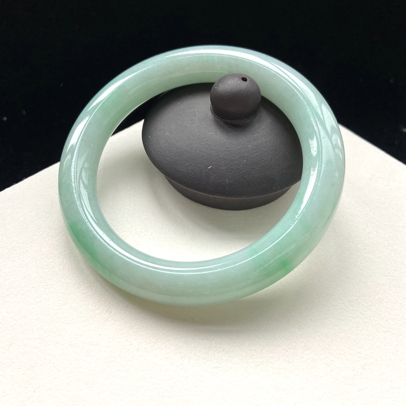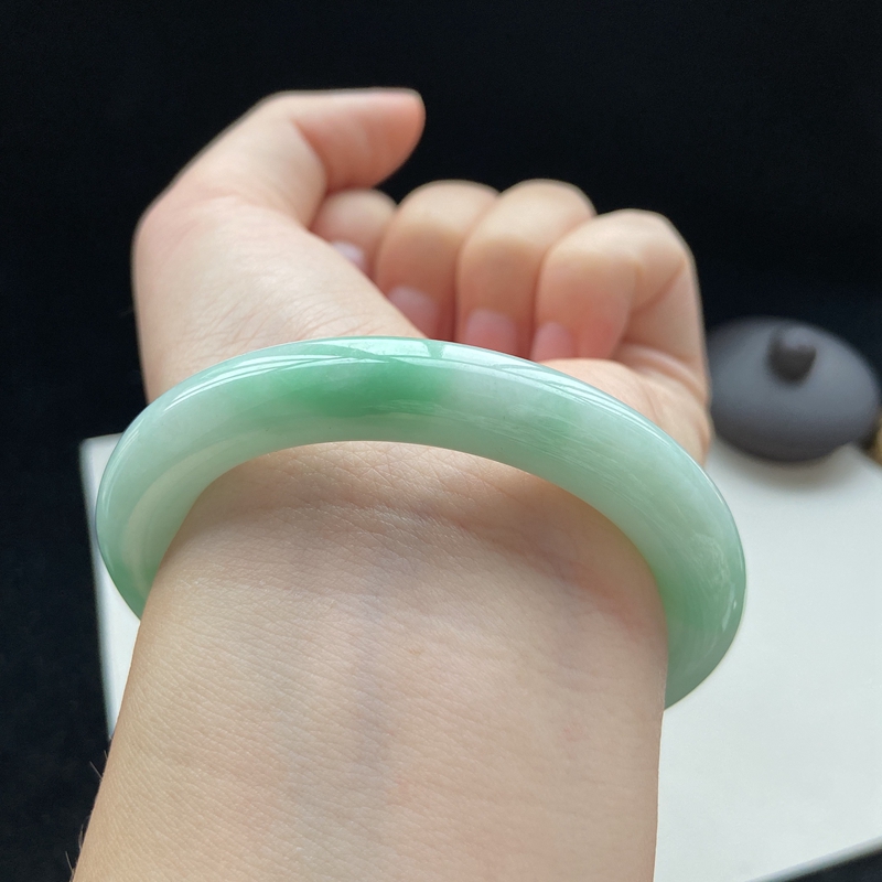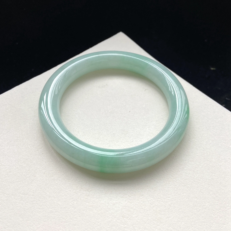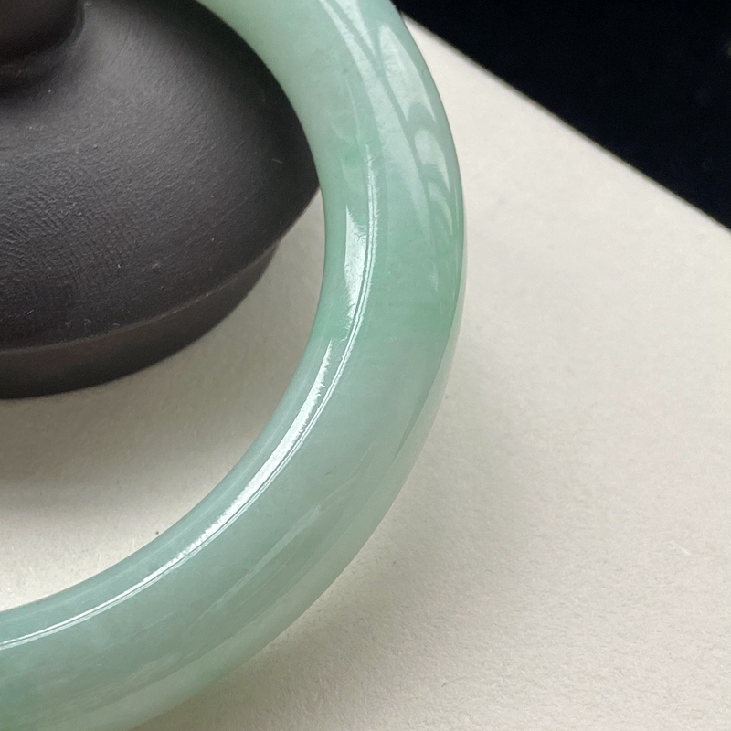 • [名  称] 53.5mm糯种浅绿翡翠圆条镯