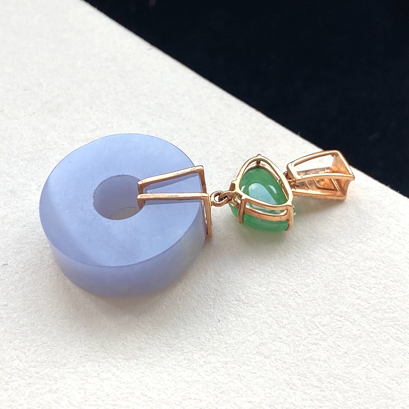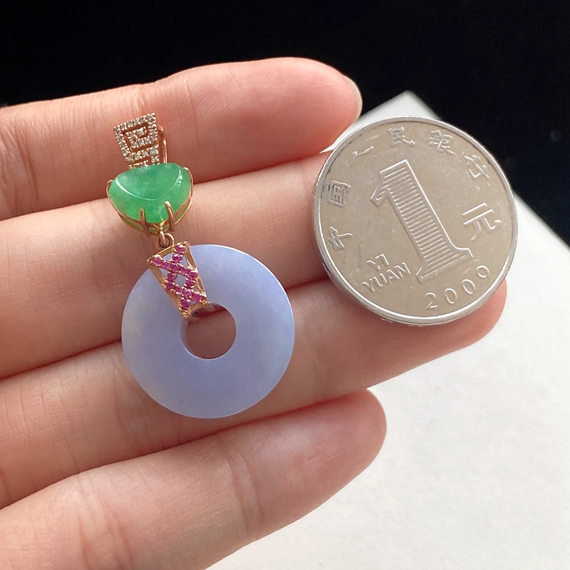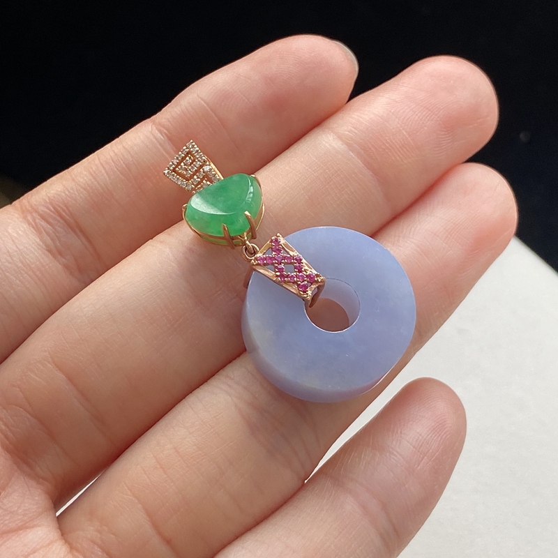 • 18K糯种紫罗兰翡翠平安扣吊坠
