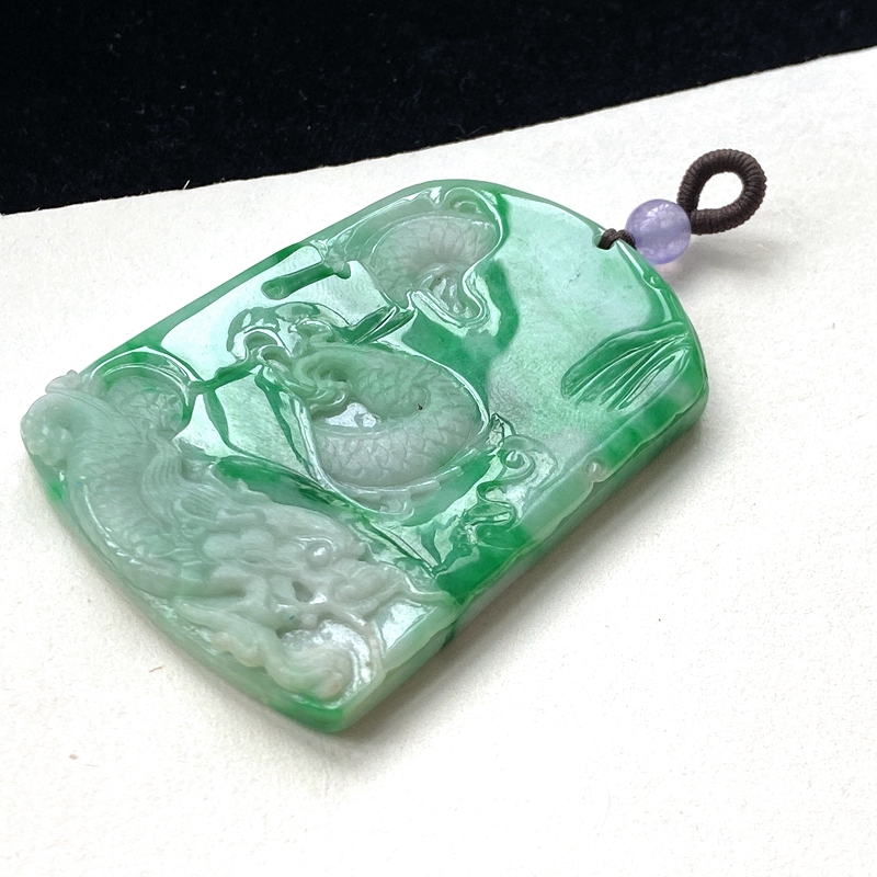 • [名  称] 糯种豆绿翡翠飞龙在天吊坠