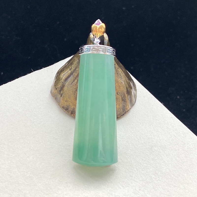 • 18K糯种浅绿翡翠平安无事吊坠