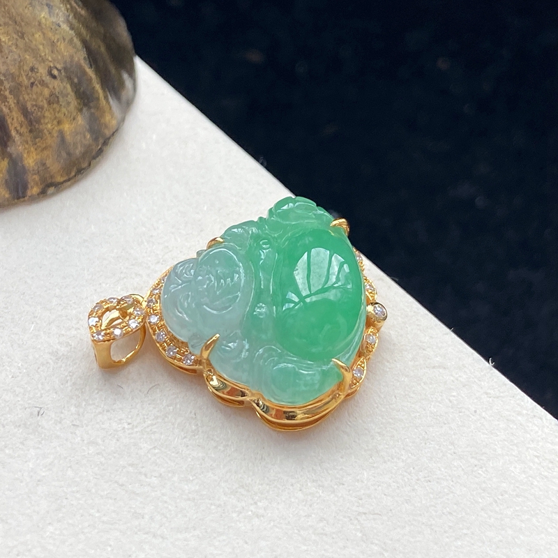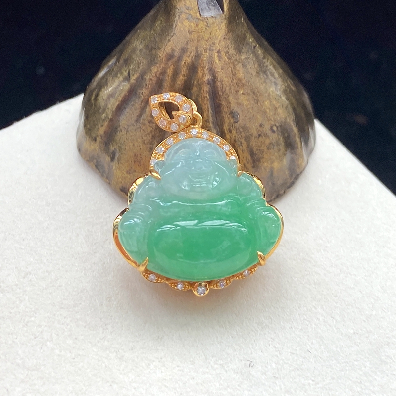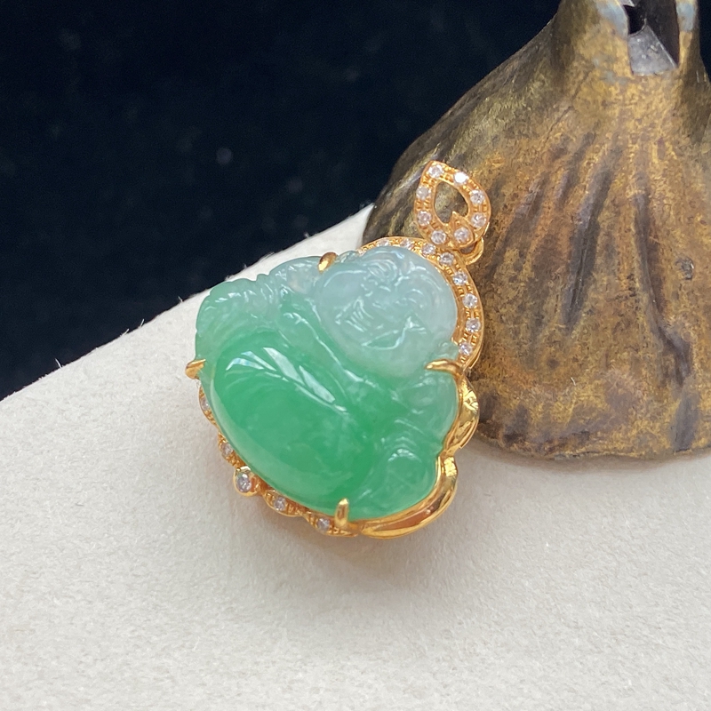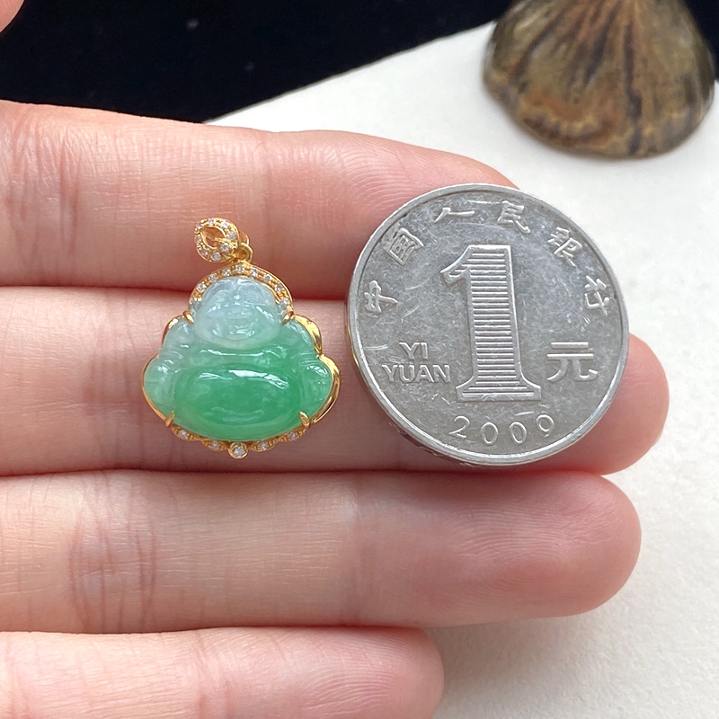 • [名  称] 18K糯种浅绿翡翠弥勒佛吊坠