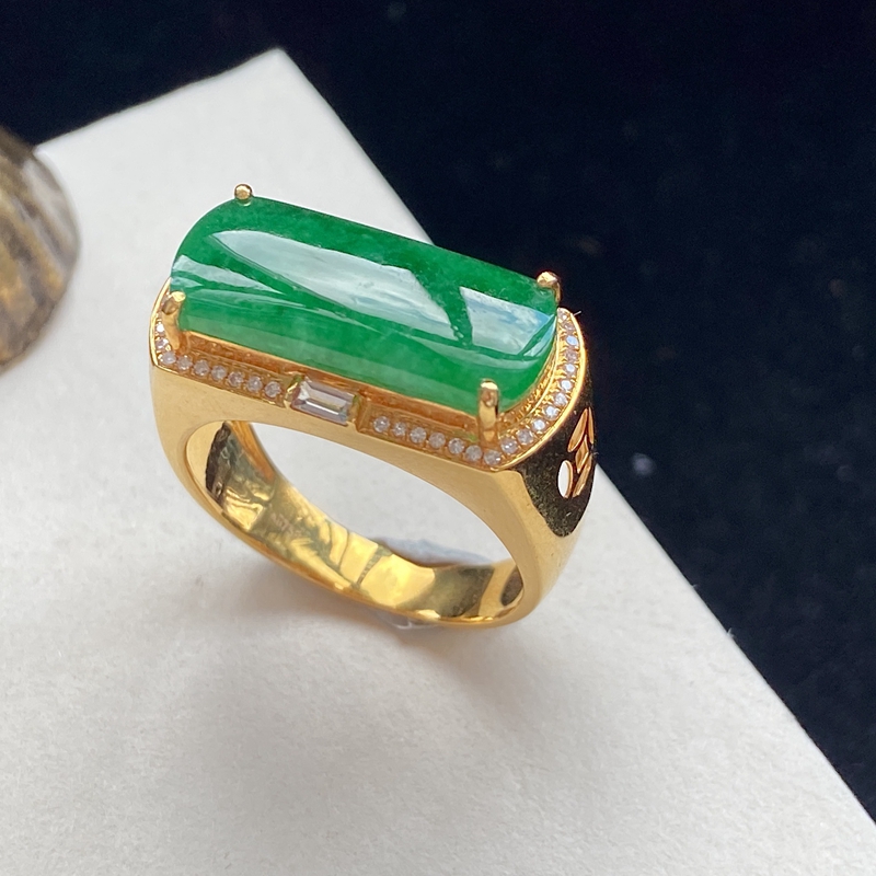 • [名  称] 18K糯种豆绿翡翠马鞍戒