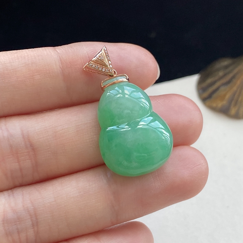 • [名  称] 18K糯种浅绿翡翠葫芦吊坠