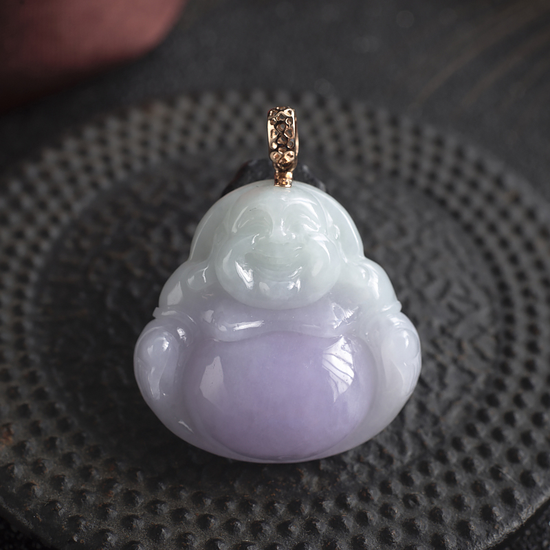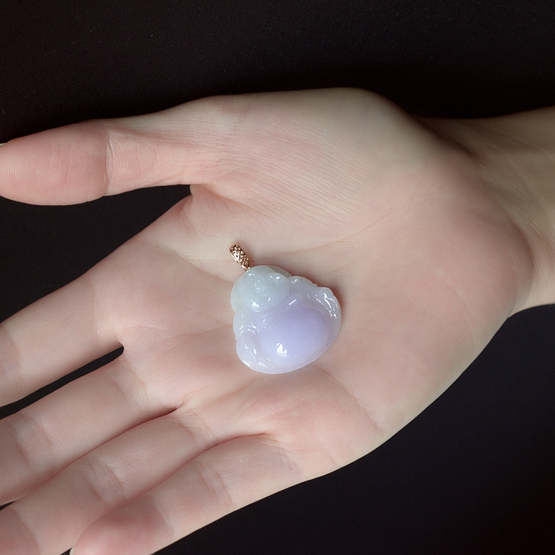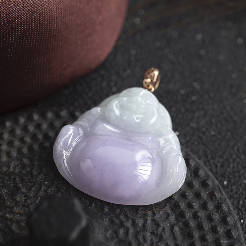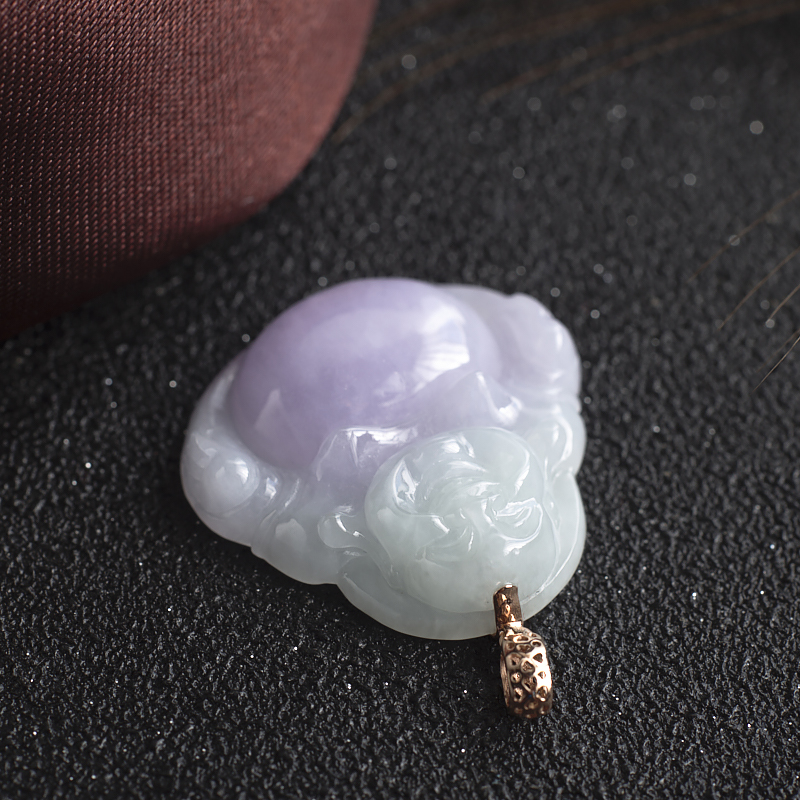 • 18K糯种浅紫色翡翠弥勒佛吊坠