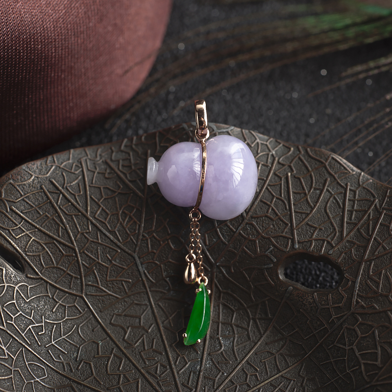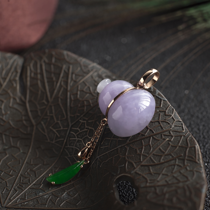 • 18K糯种浅紫色翡翠葫芦吊坠