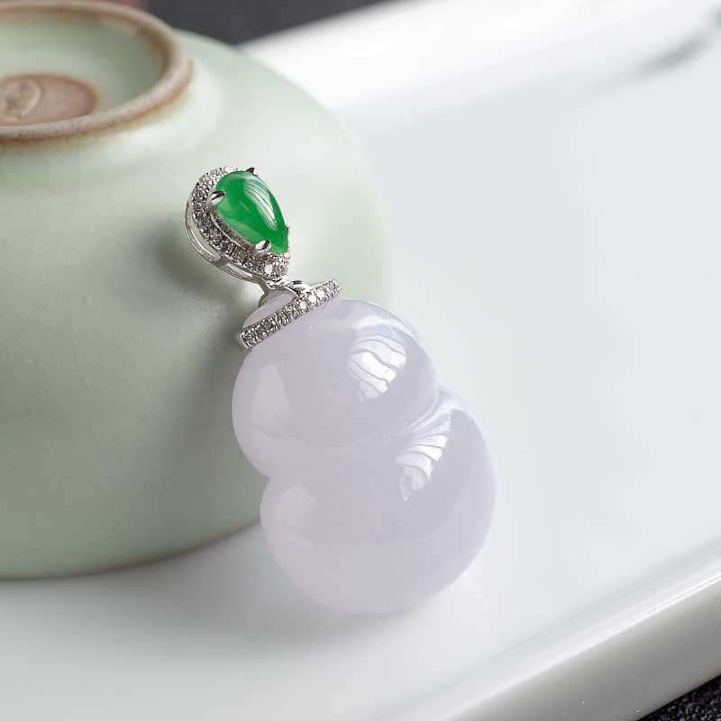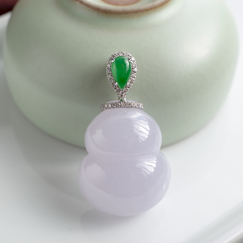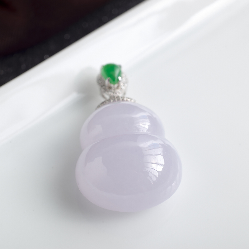 • 18K糯种浅紫色翡翠葫芦吊坠