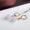 • 18K糯种浅紫色翡翠圆珠耳坠
