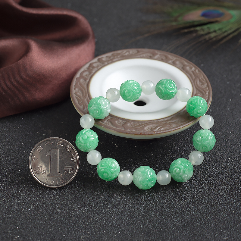 • [名  称] 11mm糯种豆绿翡翠回纹珠单圈手串