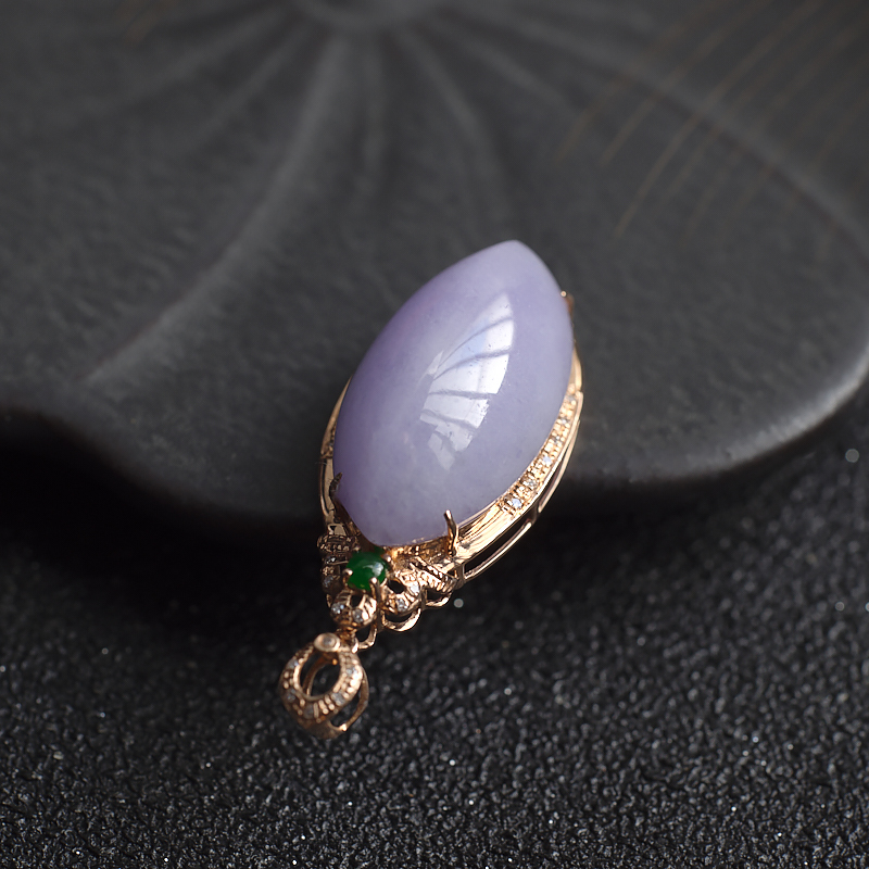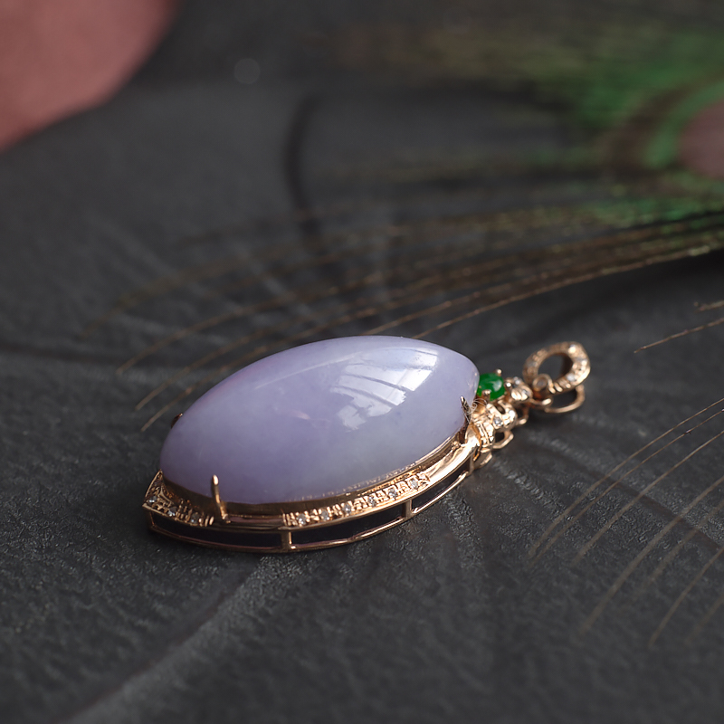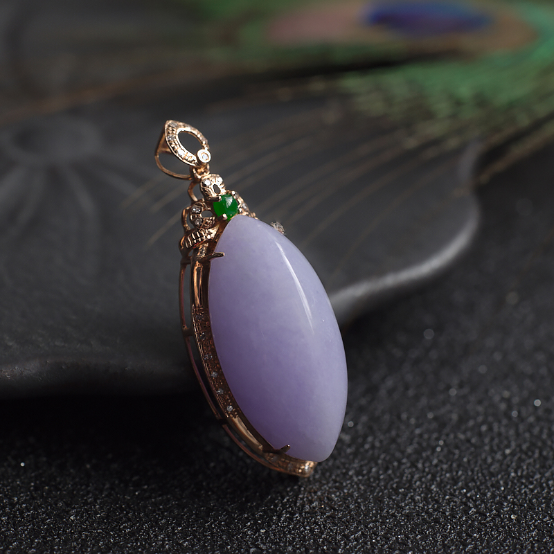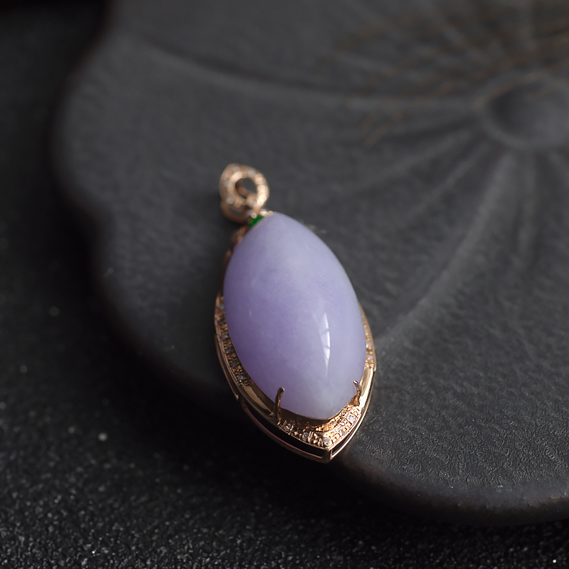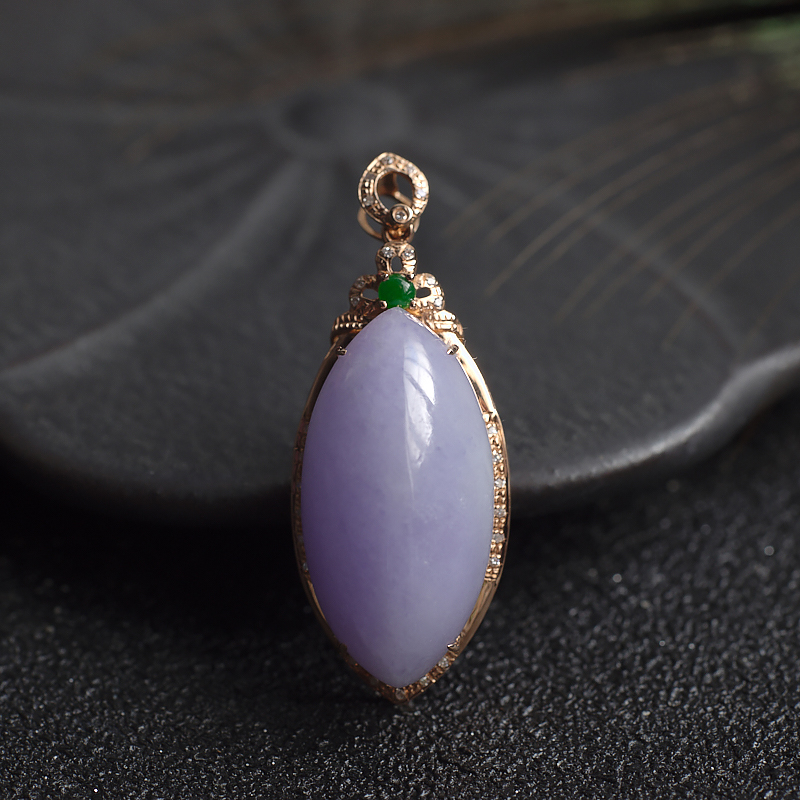 • 18K糯种紫罗兰翡翠马眼形吊坠