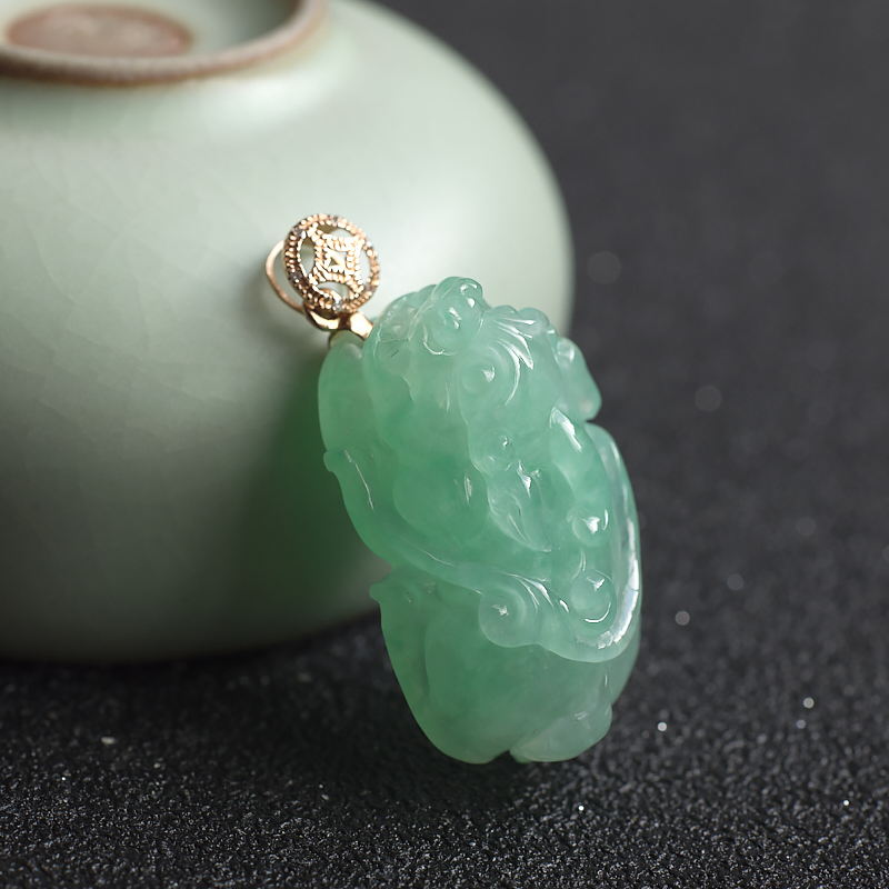 • [名  称] 18K糯种浅绿翡翠貔貅吊坠