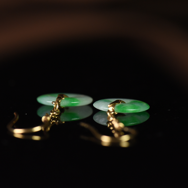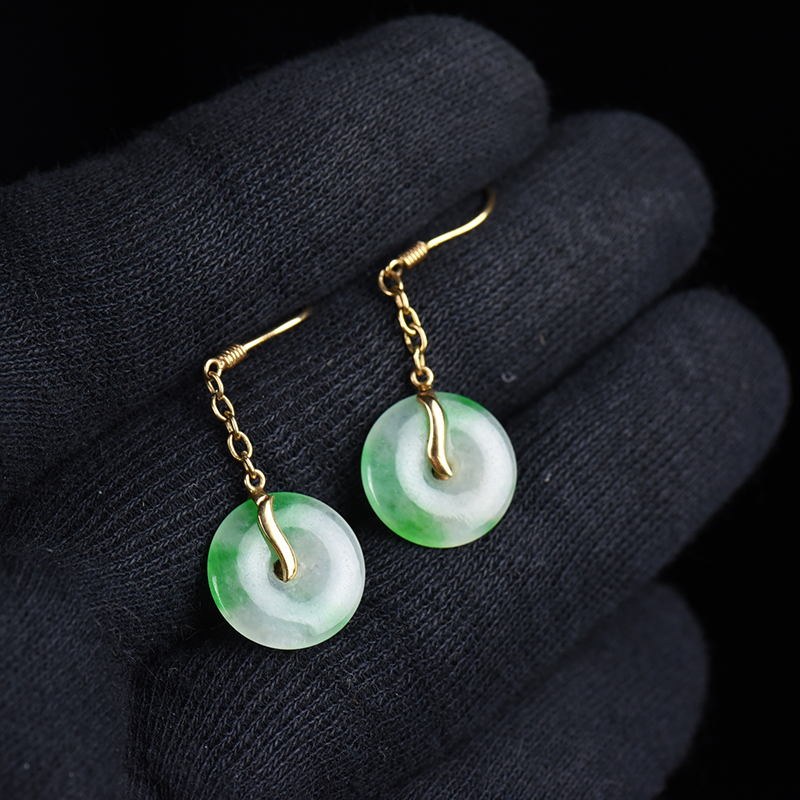 • [名  称] 18K糯种翡翠平安扣耳坠