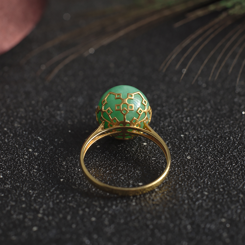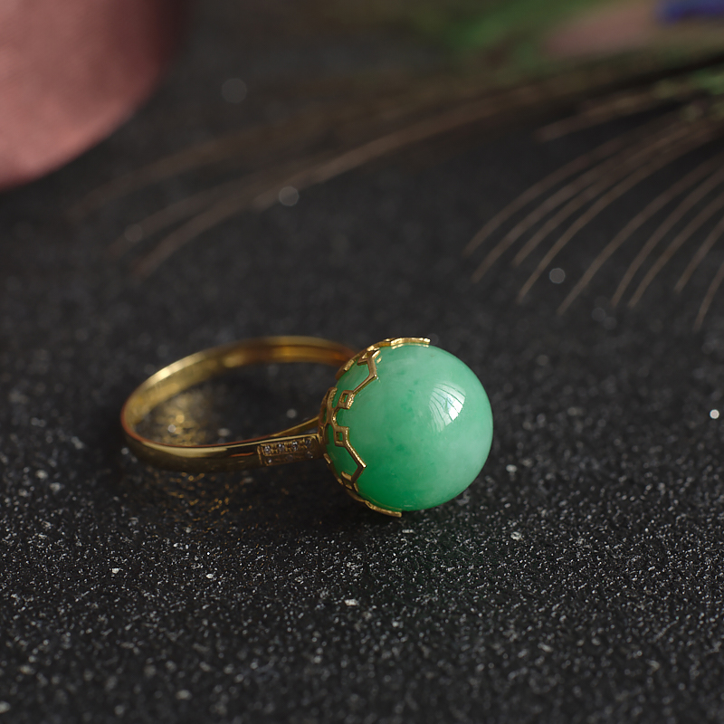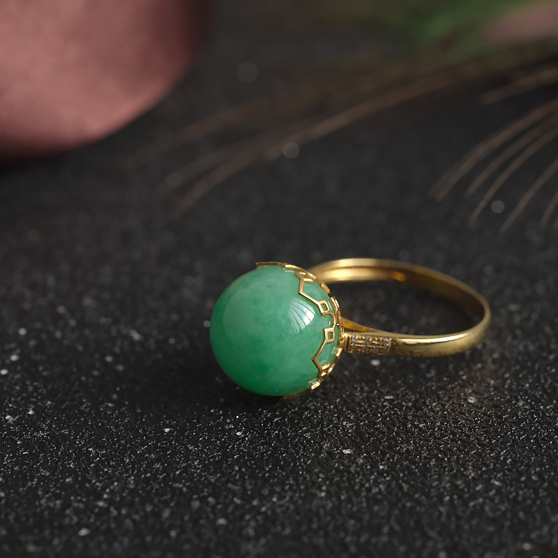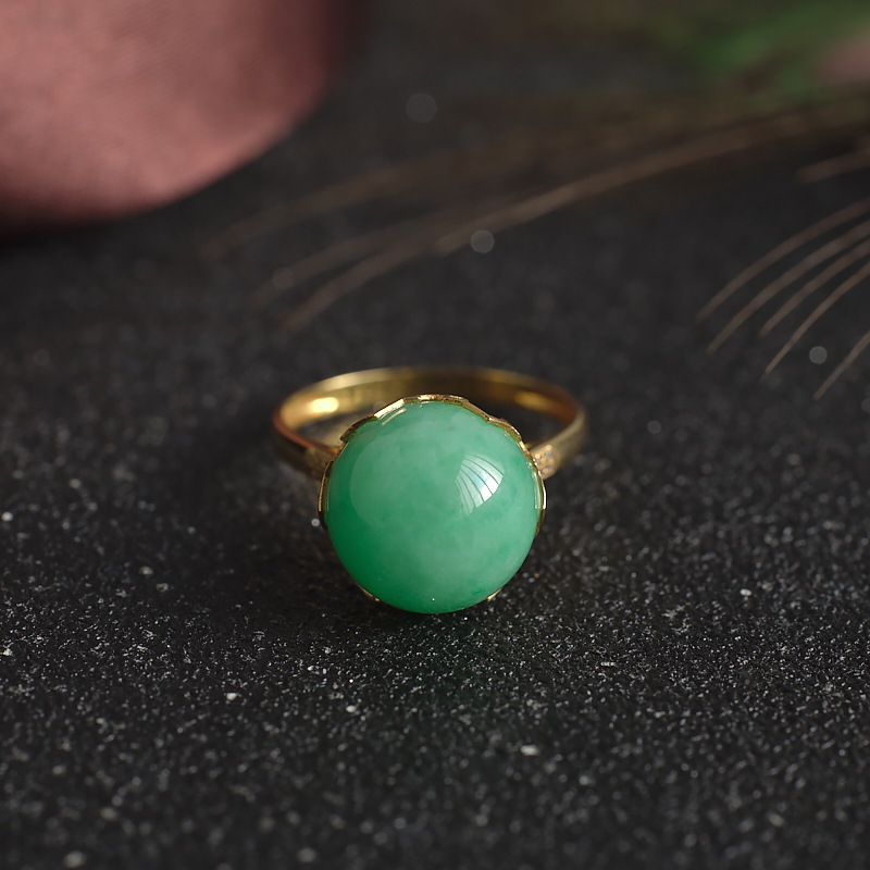 • [名  称] 18K糯种豆绿翡翠圆珠戒指
