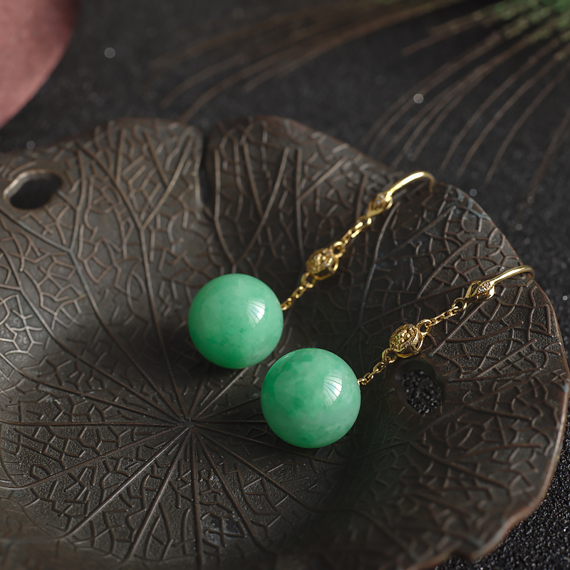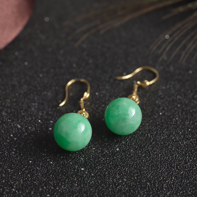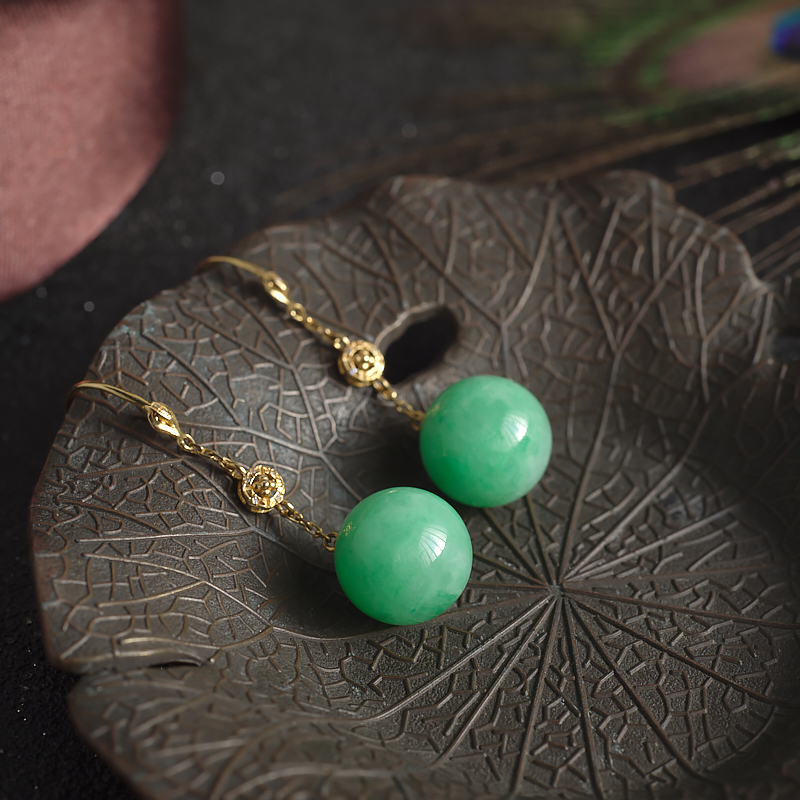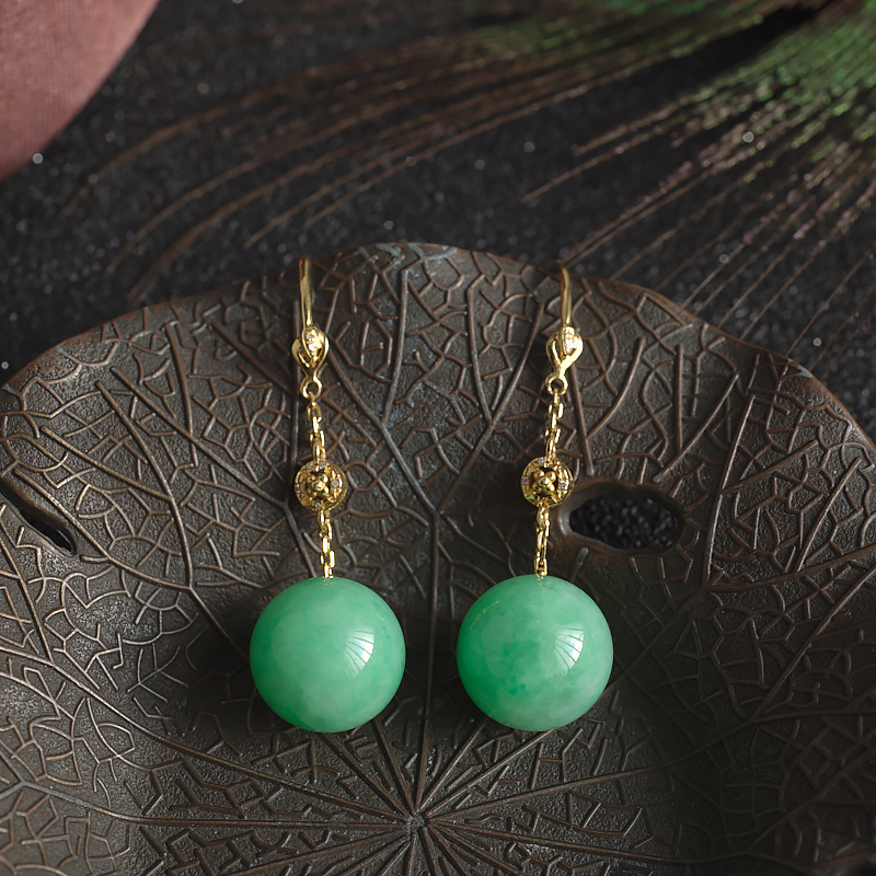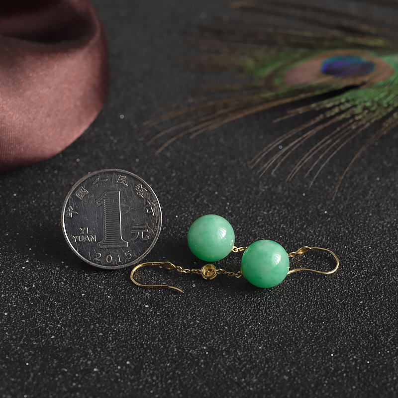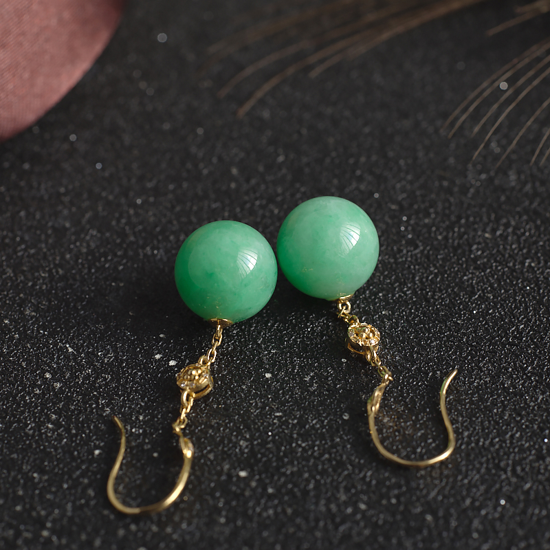 • [名  称] 18K糯种豆绿翡翠圆珠耳环