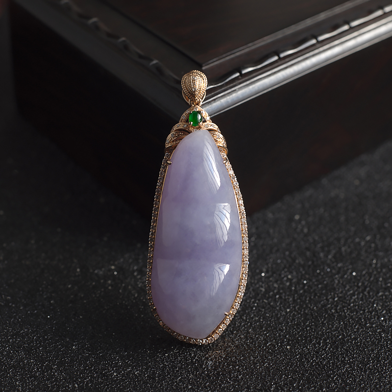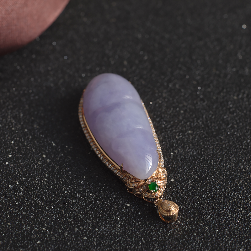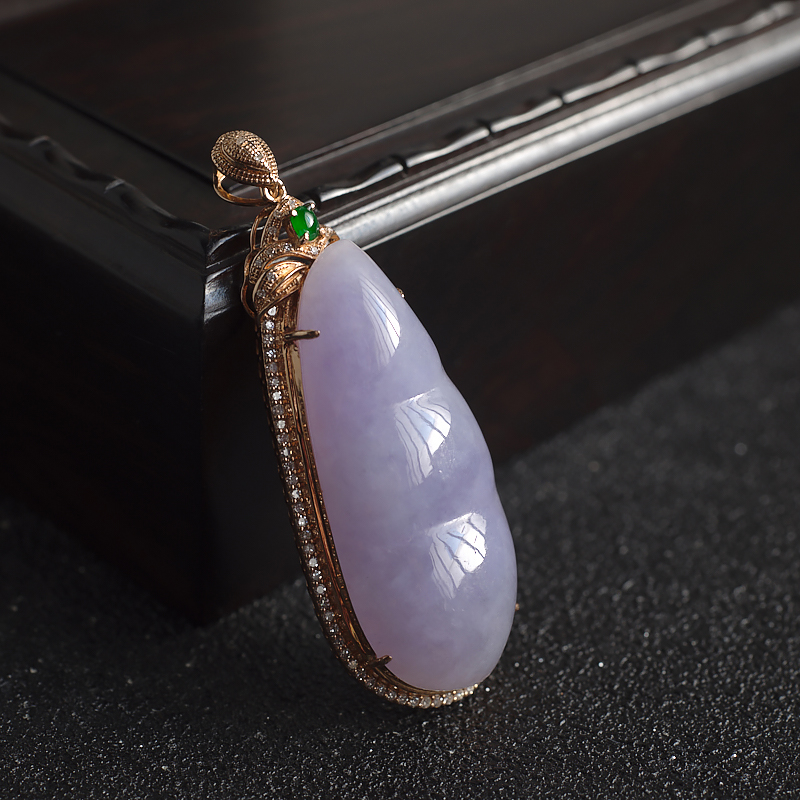 • 18K糯种紫罗兰翡翠福豆吊坠