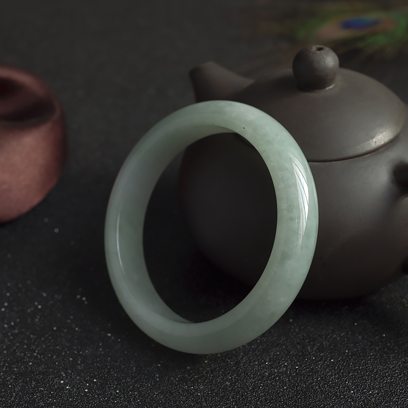 • [名  称] 53.5mm糯种浅绿翡翠平安镯